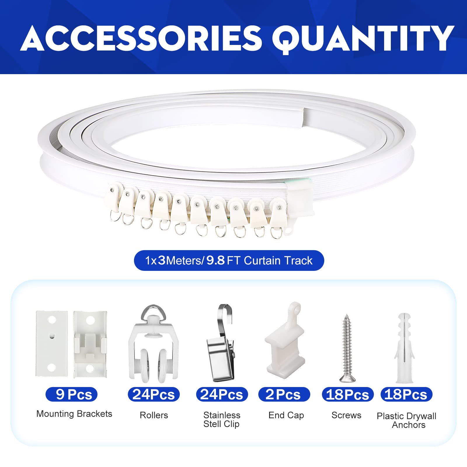 - Multi-purpose use: The ceiling flexible curtain track looks great in any setting. The ceiling track and track rollers give this curtain track the ability to open and close with ease. This makes the perfect room divider, window treatment or bay, shower track, RV, trailer, motorhome, or any tight spaces to max out your space and gives you instant privacy.