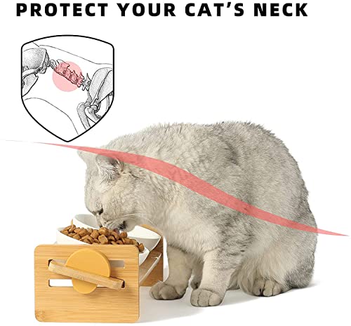 - FOOD GRADE CERAMIC BOWLS - Ceramic material is sturdy, rust-free and harmless to cats. And the natural bamboo holder is coated with varnish, which is waterproof and durable