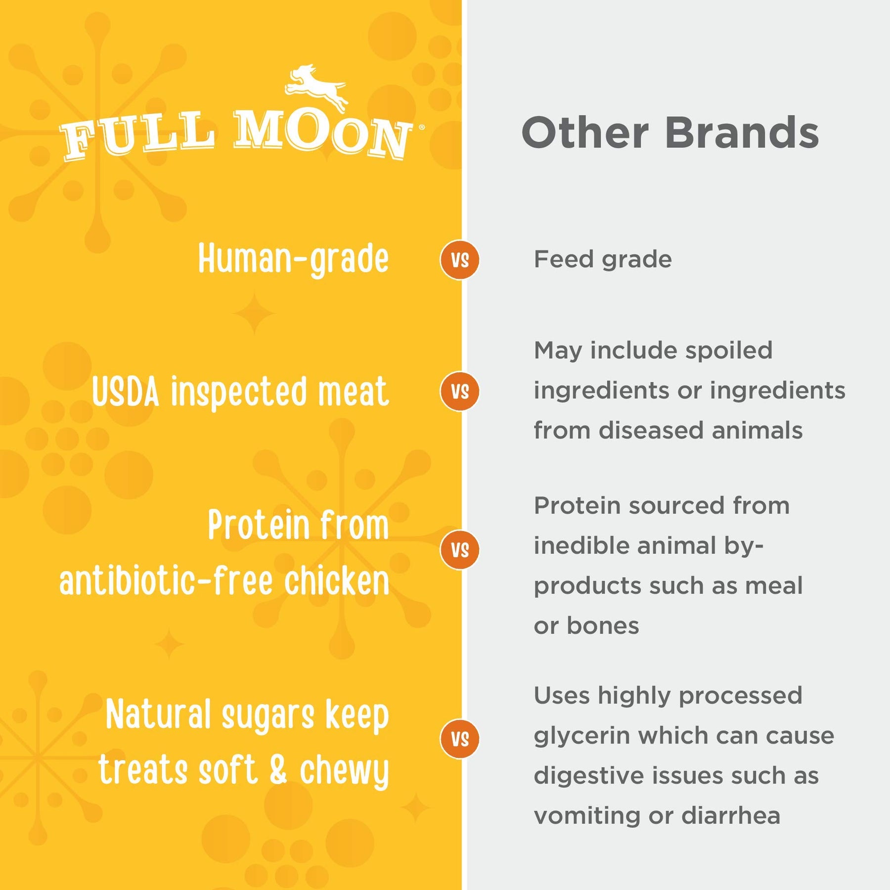 - U.S.-GROWN CHICKEN: Full Moon treats are proudly made in the United States using regionally sourced ingredients, including USDA approved, antibiotic-free chicken.