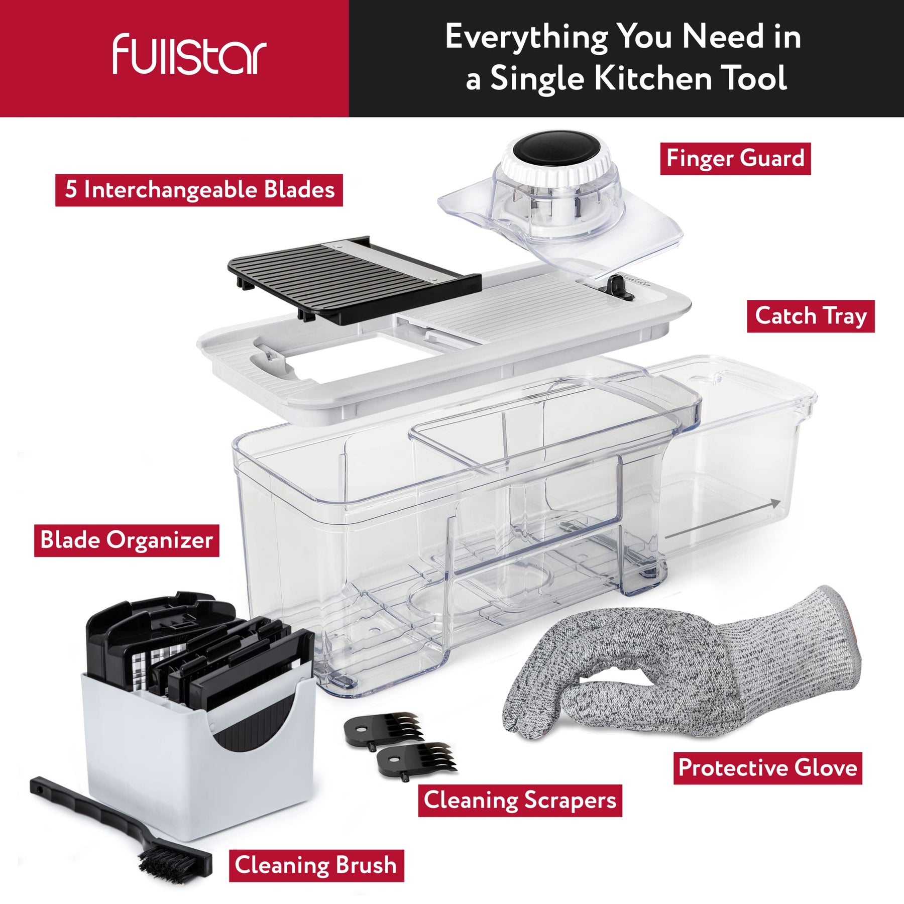 - Bonus handheld spiralizer - compact and easy to use, the Fullstar mandoline slicer comes with a bonus 3 in 1 adjustable spiralizer. Unlike large units this kitchen gadget is easy to store and a breeze to clean as it is dishwasher-safe.