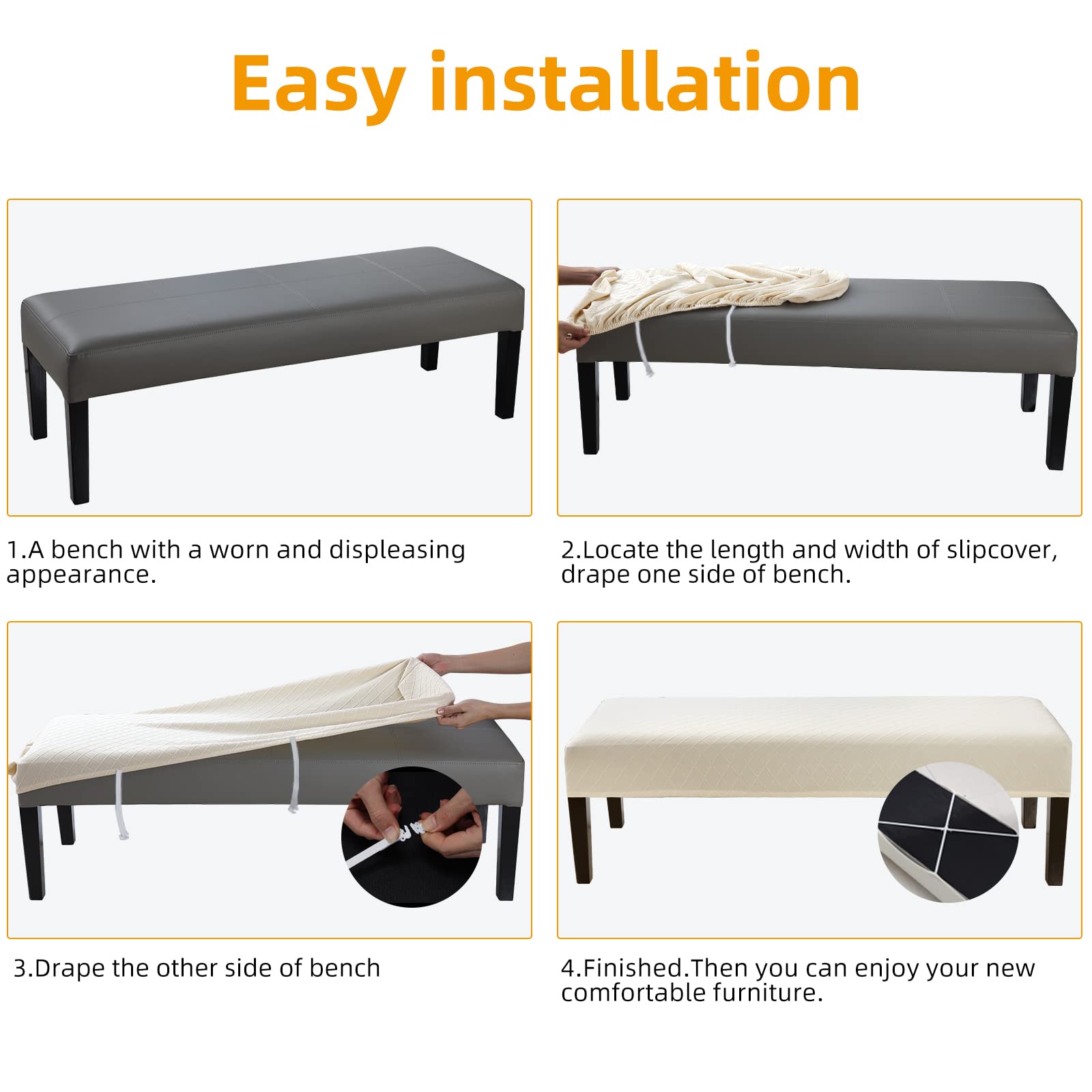 - Easy to Use: Stretch dining room bench cover comes with elastic straps and 4 buckles, sewn-in elastic hem for a secure fit that won't shift or move; Fuloon dining room bench cover is machine washable, tumble dry low, no ironing required