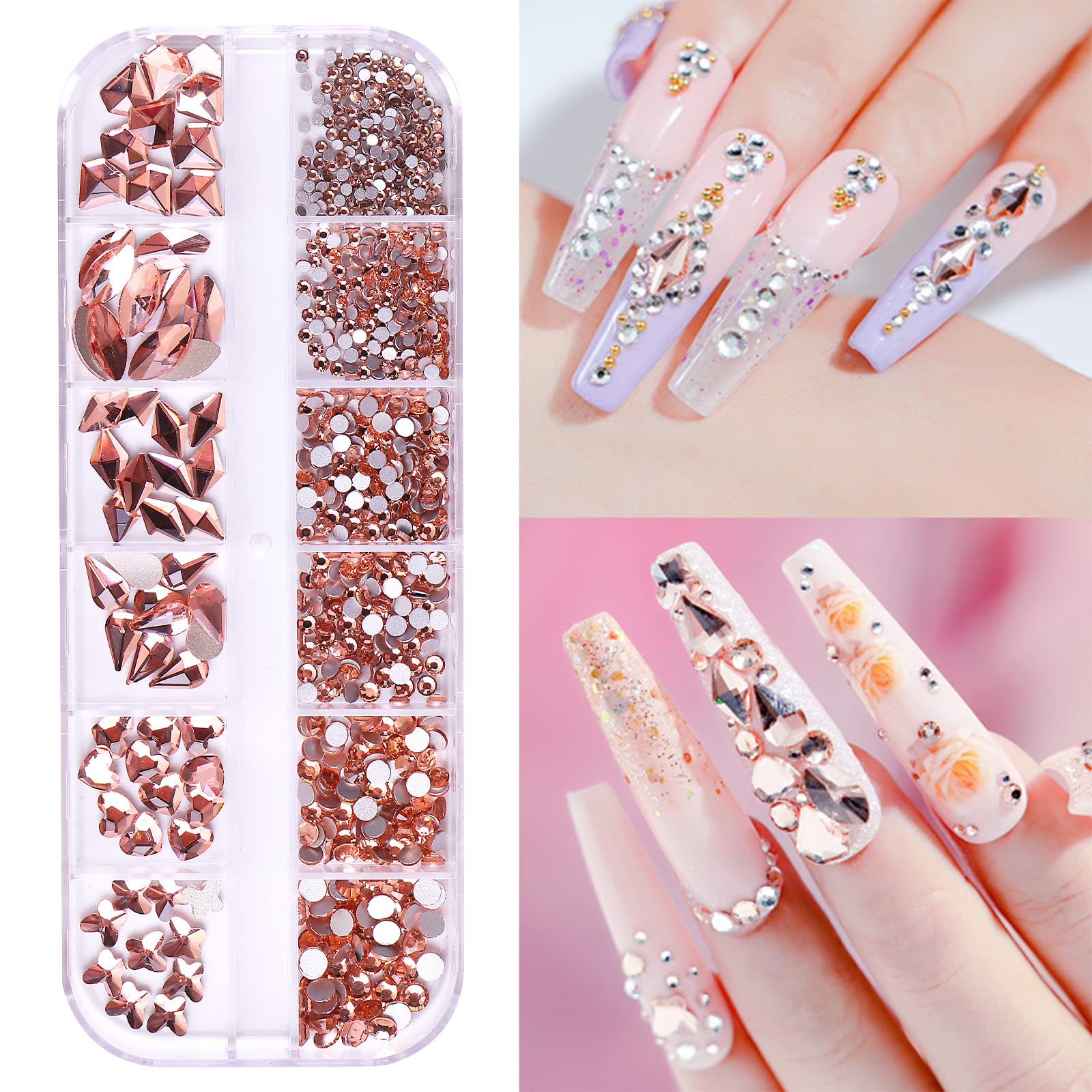 - Original Rhinestones & Decorations – 810Pcs Sparkly Champagne Nail Rhinestones 3D Nail Art Diamond for Nails Decoration Muliti Size Crystal Bead Flatback Gem Stones Gold Crystal Rhinestones for Nail Design Charms DIY Crafts by FULZTEY