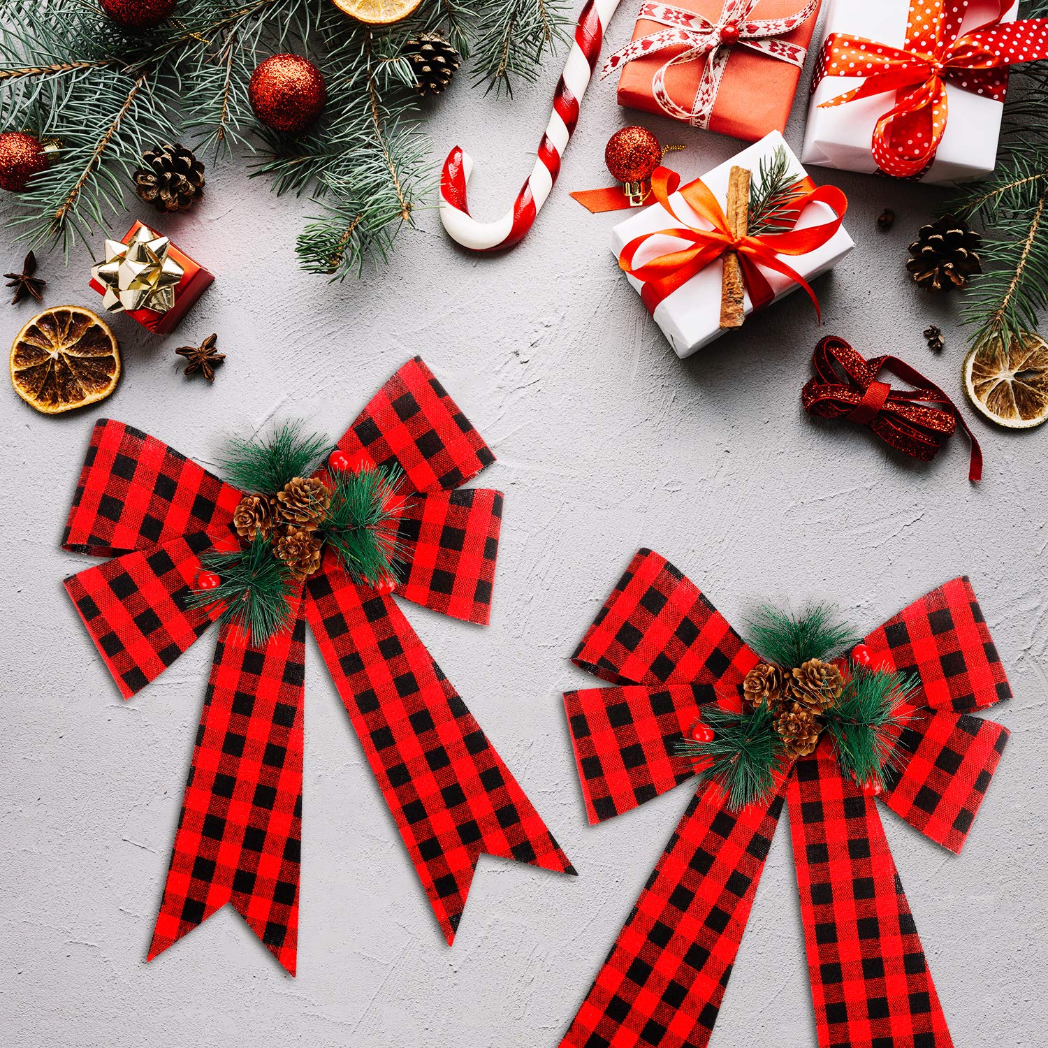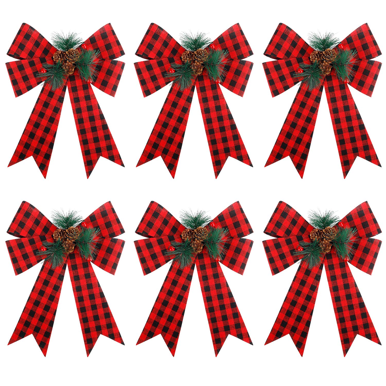 - Original Gift Wrap Bows – Christmas Red Buffalo Plaid Bows 9 x 12 Inch Large Waterproof Holiday Decorative Bows with Pinecone for Wreath Garland Christmas Tree Topper Outdoor Decorations, 6 Pack by FUNARTY