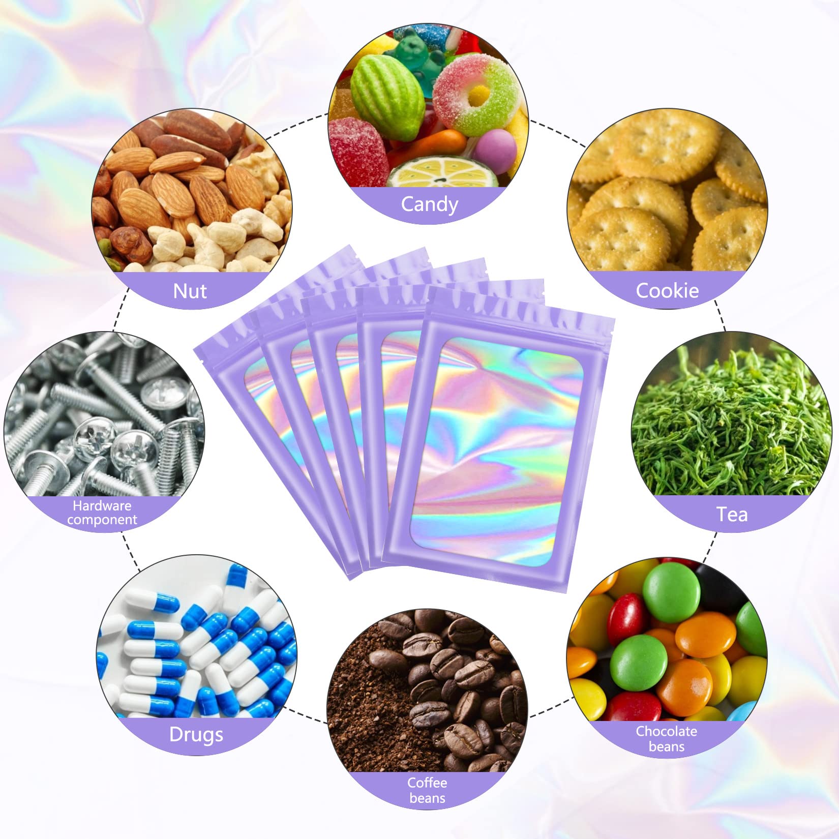 - Original Food Storage Bags – Funfery 100 pcs Purple Smell Proof Mylar Holographic Bags Packaging Bags,Clear Seal Resealable Odor Proof Bags Foil Pouch Zipper Bags for Food Storage,Lipgloss,Jewelry,Eyelash Packaging(3x4.7In) by FUNFERY