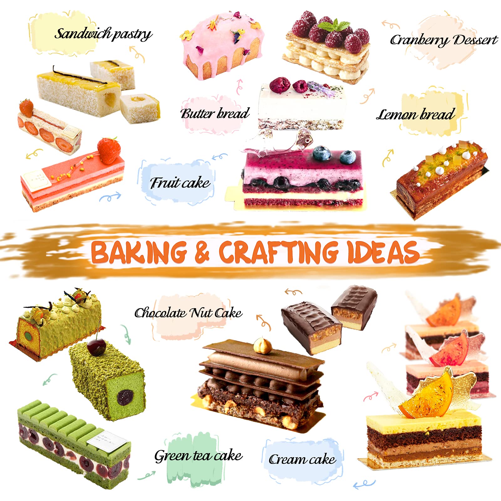 - Oblong baking mold for rice krispies treats, soap, large crayons, resin or crafting projects, cake, bread, cupcake, cheesecake, cornbread, muffin, brownies, fianciers, chocolate candy bar, protein bars, breakfast granola bars, cereal bar, snacks, caramels, panna cotta, mini pumpkin breads, castella sponge, biscuit stick, strips eclair, cracker bar, varied of desserts and more.