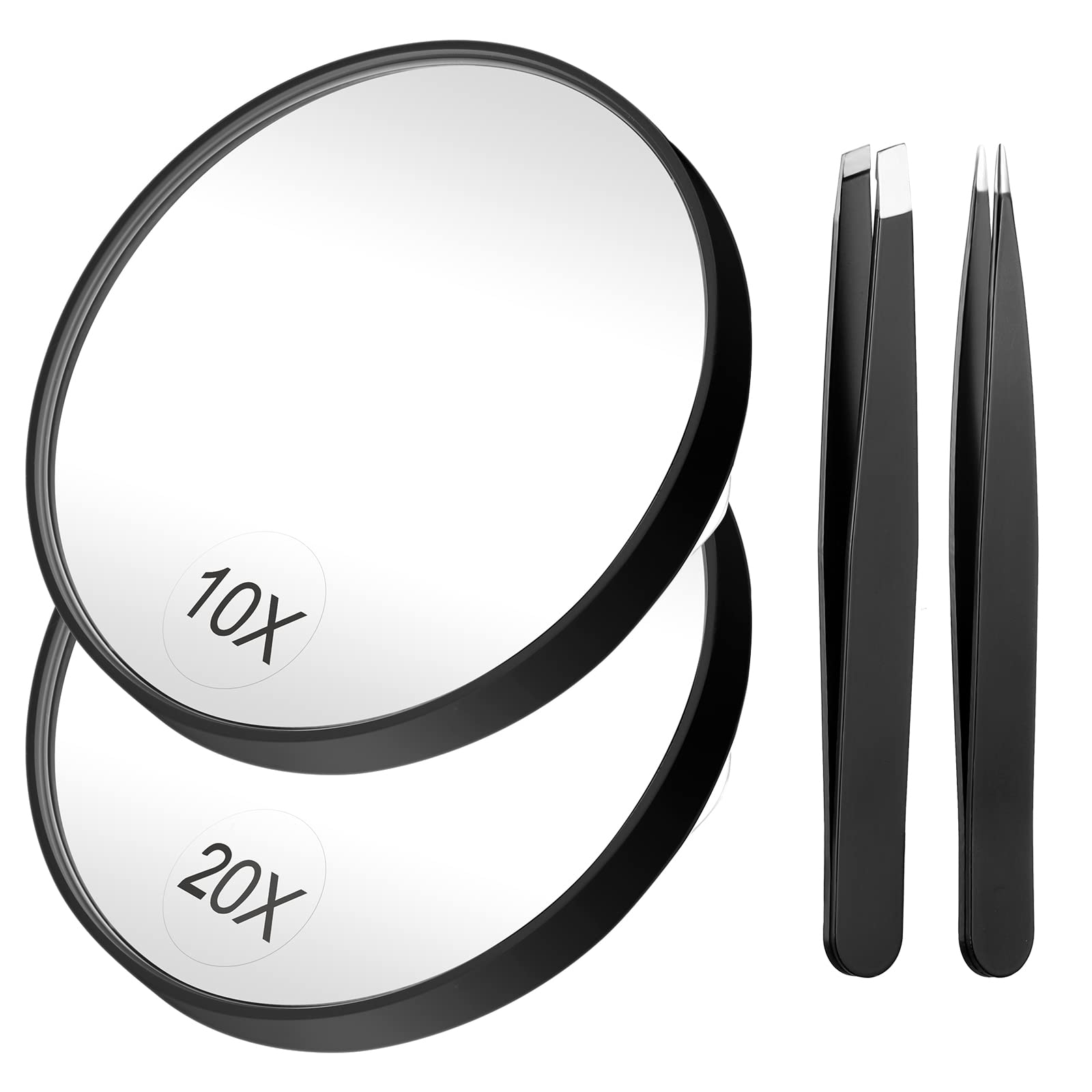 - Original Make-up Mirrors – Magnifying Mirror, 3.5 Inch 20X Mirror & 10X Magnifier Mirrors with 2 Suction Cups, Small Travel Magnifying Mirror and Tweezers Kit for Eyebrow Tweezing, Blackhead Blemish Removal (Black) by Funtopia