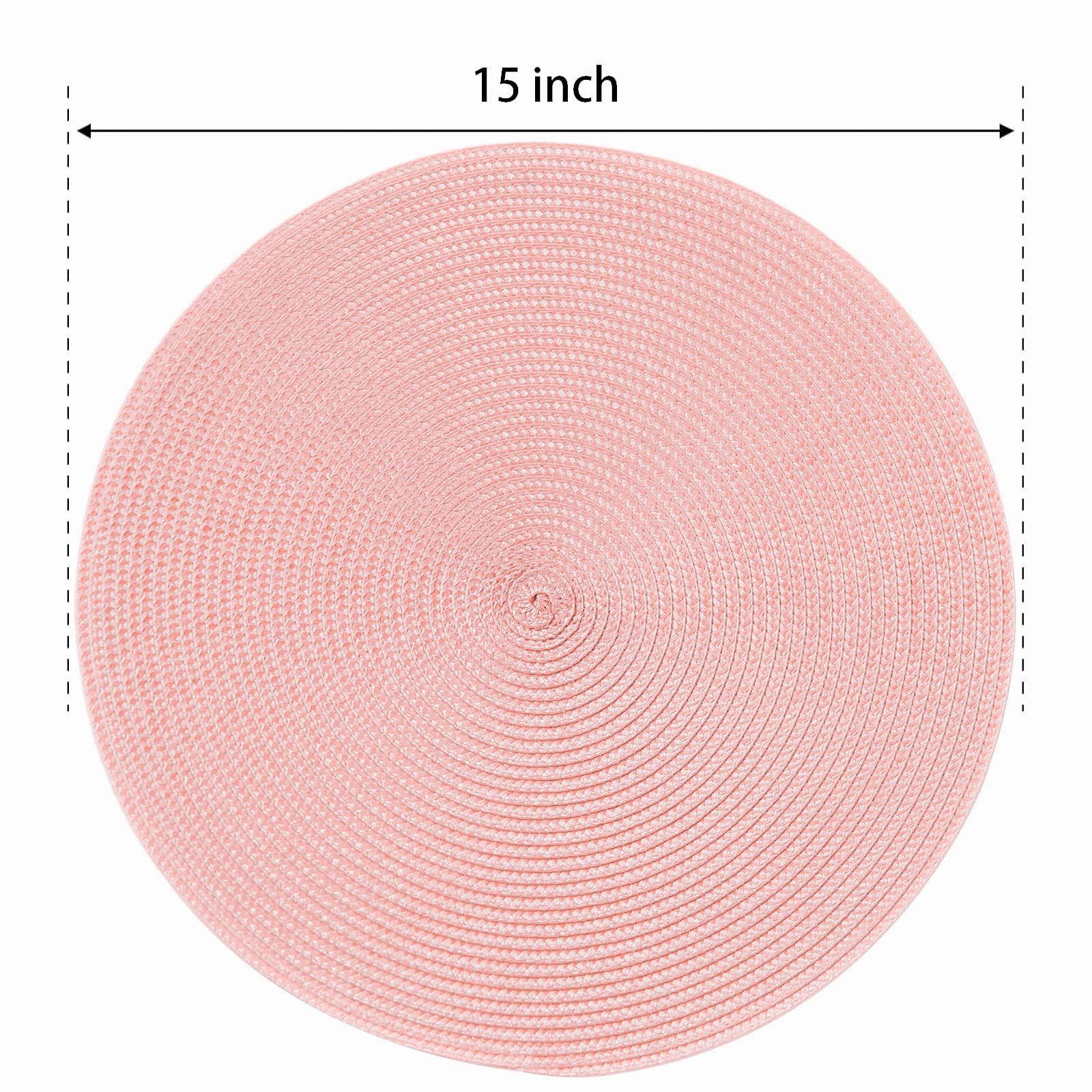 - Original Place Mats – Round Braided Placemats Set of 6 Place Mats for Dining Tables Woven Washable Non-Slip Table mats 15 inch(Pink, 6pcs) by FunWheat