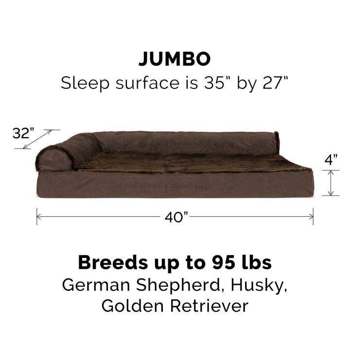 - Original Beds – Orthopedic Dog Bed for Large Dogs w/ Removable Bolsters & Washable Cover, For Dogs Up to 95 lbs - Plush & Velvet L Shaped Chaise - Sable Brown, Jumbo/XL by Furhaven