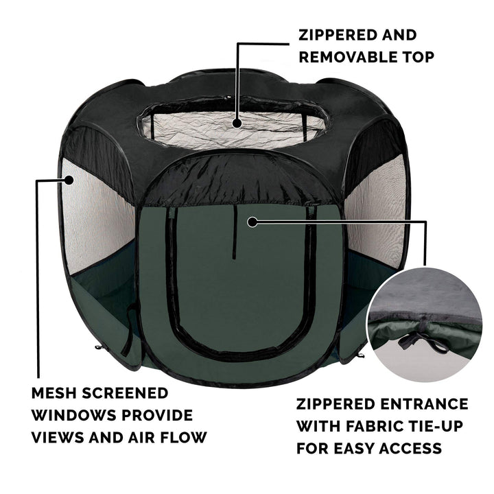 - Original Playpens – Portable Dog Playpen Cat Tent, Pet playground/kennel foldable indoor outdoor zippered puppy crate - Hunter Green, Small by Furhaven