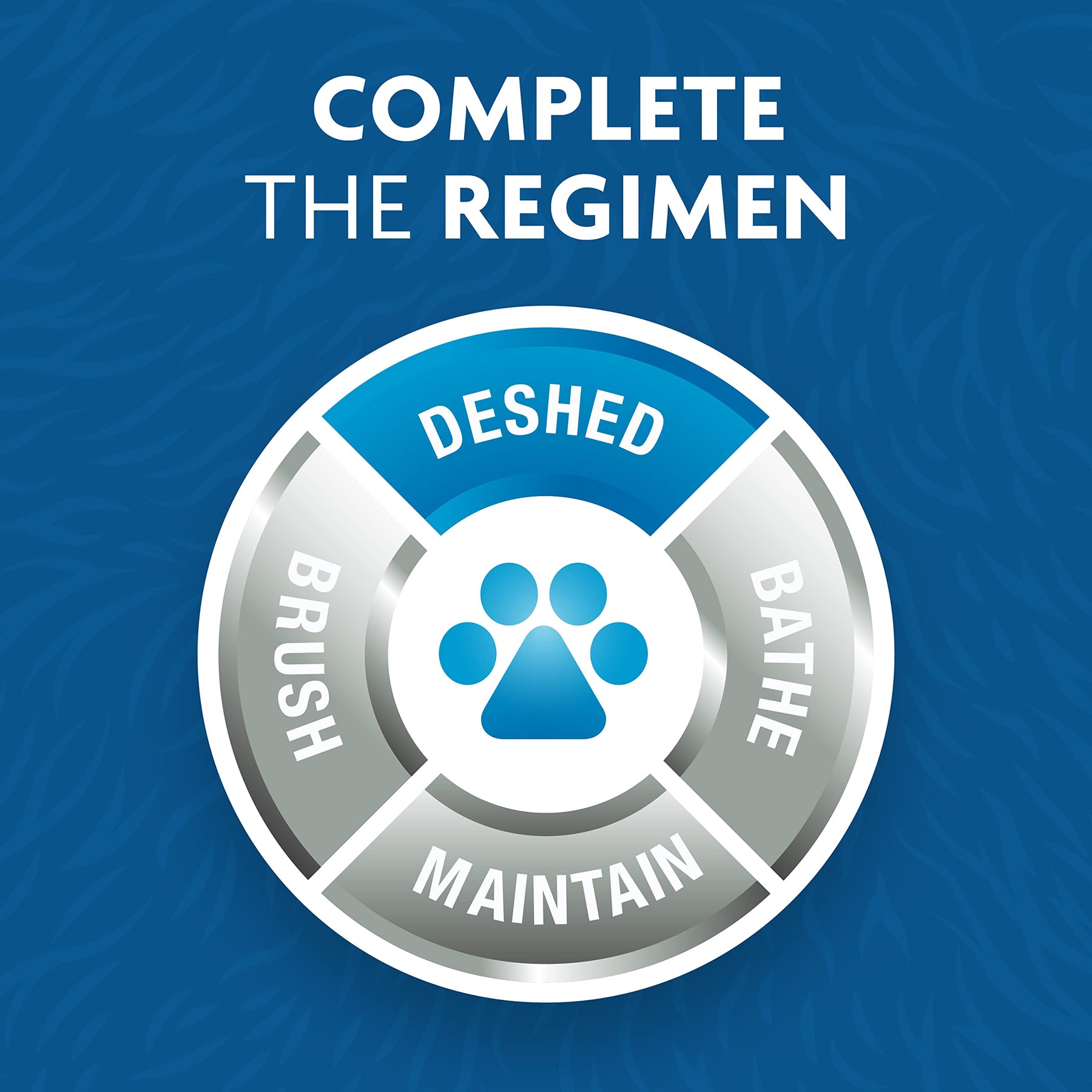 | directions | Brush daily to detangle and smooth fur; deShed weekly to reduce shed hair; and bathe monthly to promote healthy skin and coat while reducing shedding. |