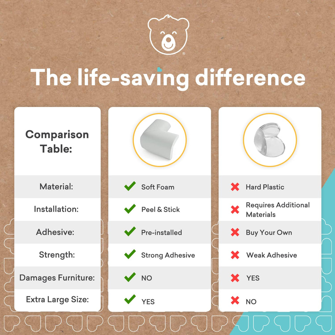 - EASY INSTALLATION! Our Corner Protector Baby come pre-taped using double-sided adhesive, which makes installing them and protecting your kids a breeze. All you have to do is peel off the tape and stick it to the corner that you need to protect.