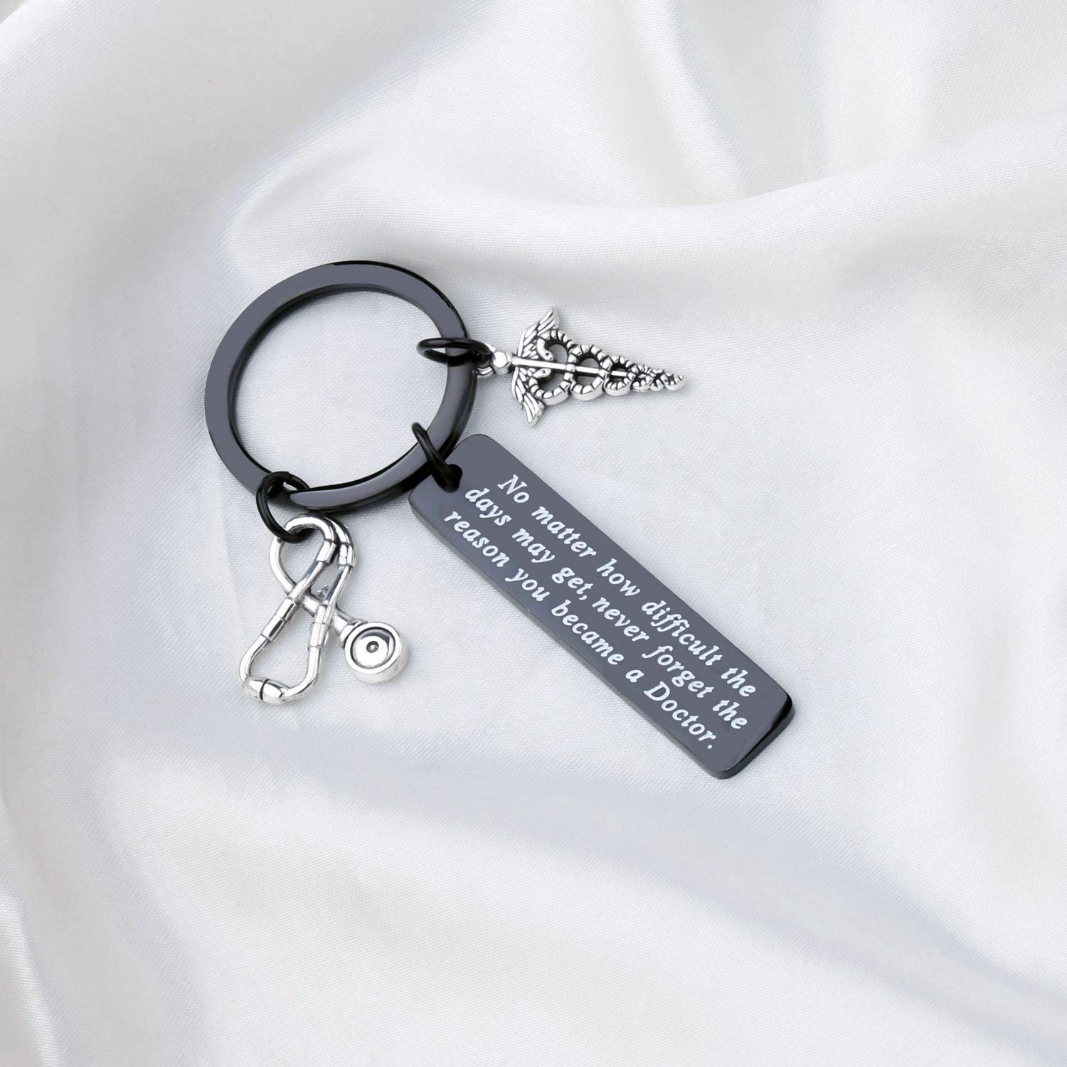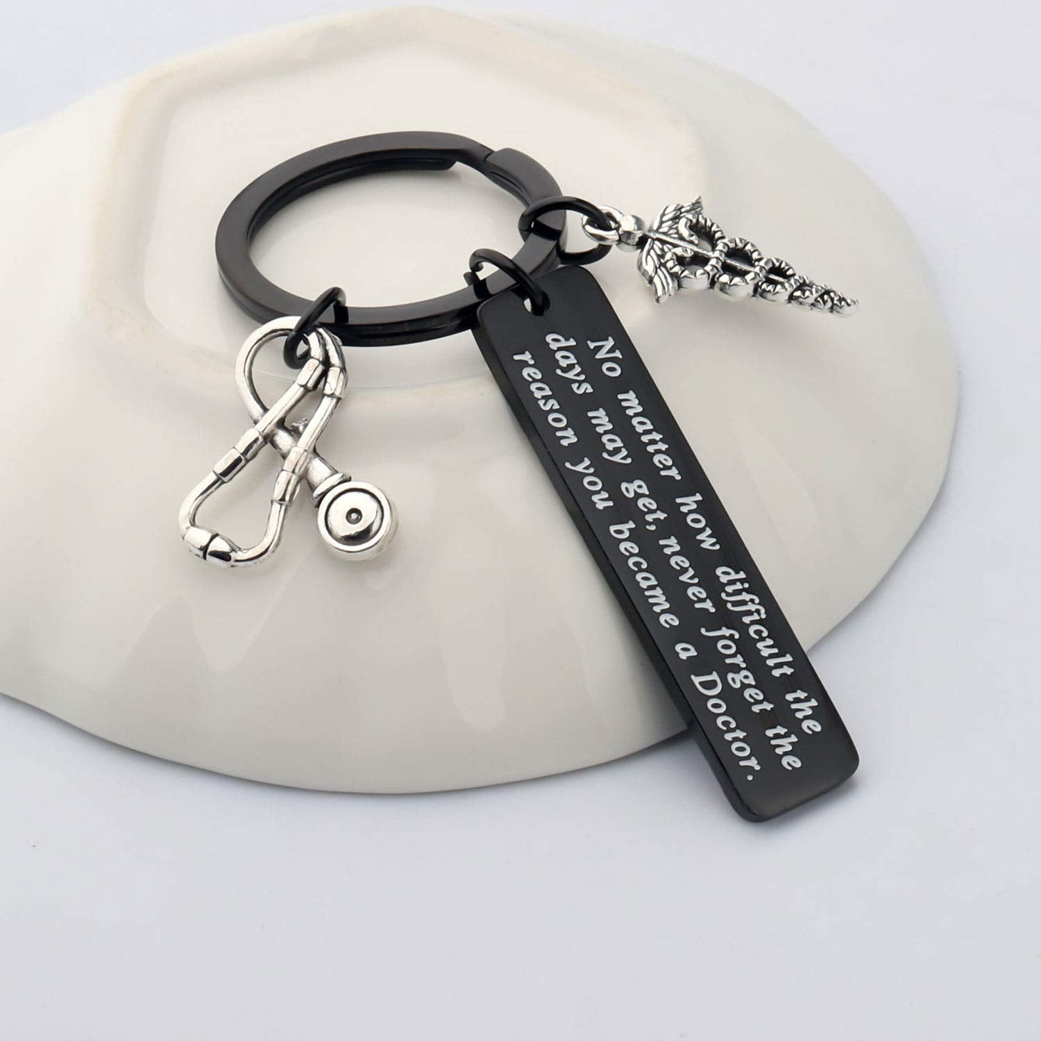 - Doctor keychainThis inspirational keychain gifts for doctors engraved withNo matter how difficult the days may get, never forget the reason you became a doctor. Best gifts for Registered Doctor.Caduceus CharmStethoscope Charm. Let this Doctor Keyring brings the receiver a little strength and love.