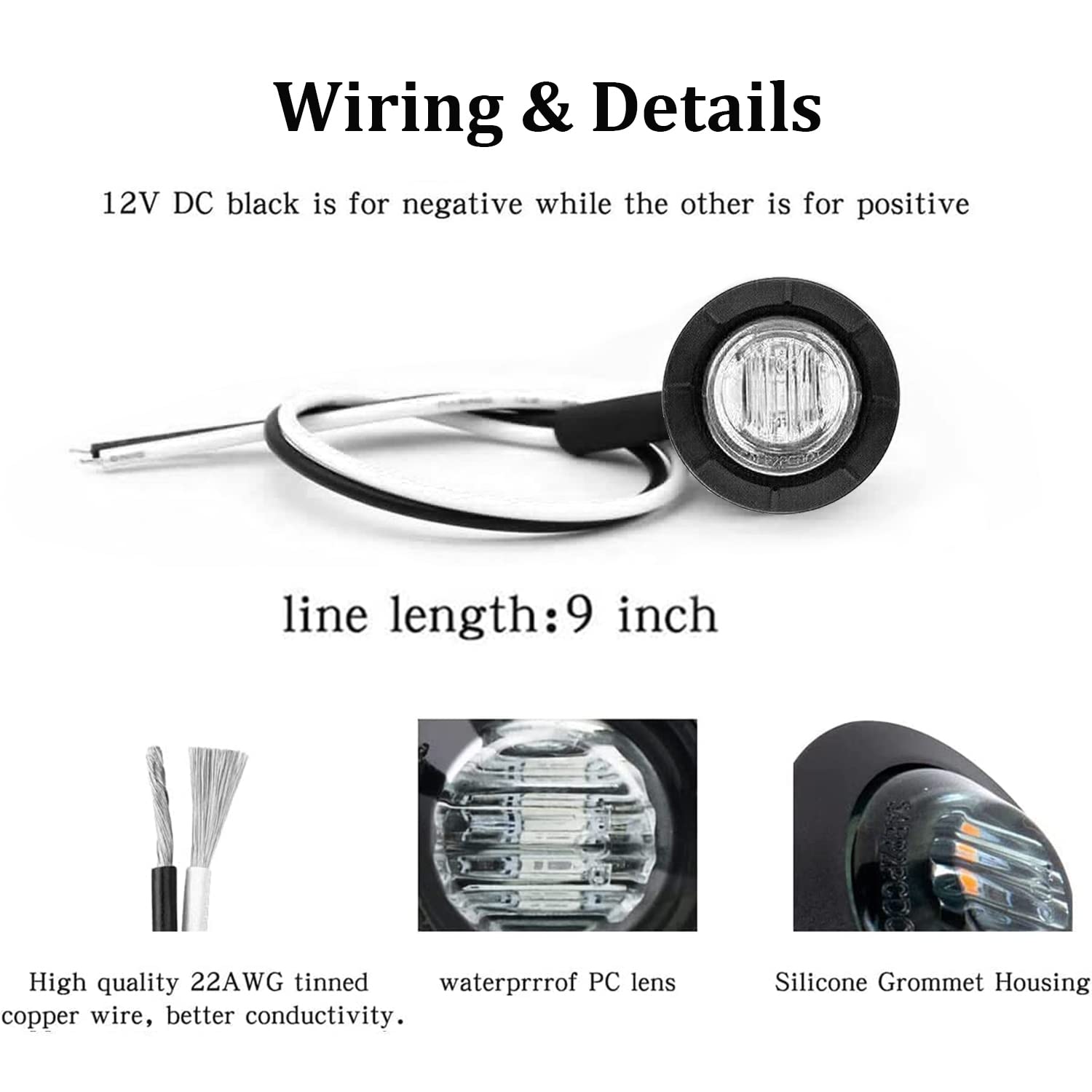 - 12V 3/4 inch Round Bullet Mini Grommet Side Marker Light ,3 PCS High Quality SMD LED Inside of the Lamp Offer Extreme Bright light. SAE P2 PC,DOT. Waterproof PC Lens,Shock Proof ,Dust Proof ,Rubber Cover Sealed Light.