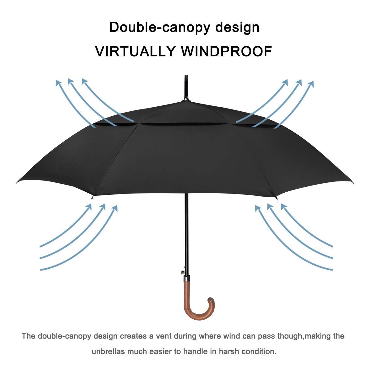 - Original Umbrellas – 52/62inch Wooden J Handle Golf Umbrella Windproof Classic Stick Wedding Cane Umbrellas, Auto Open Cane Hook Handle by G4Free