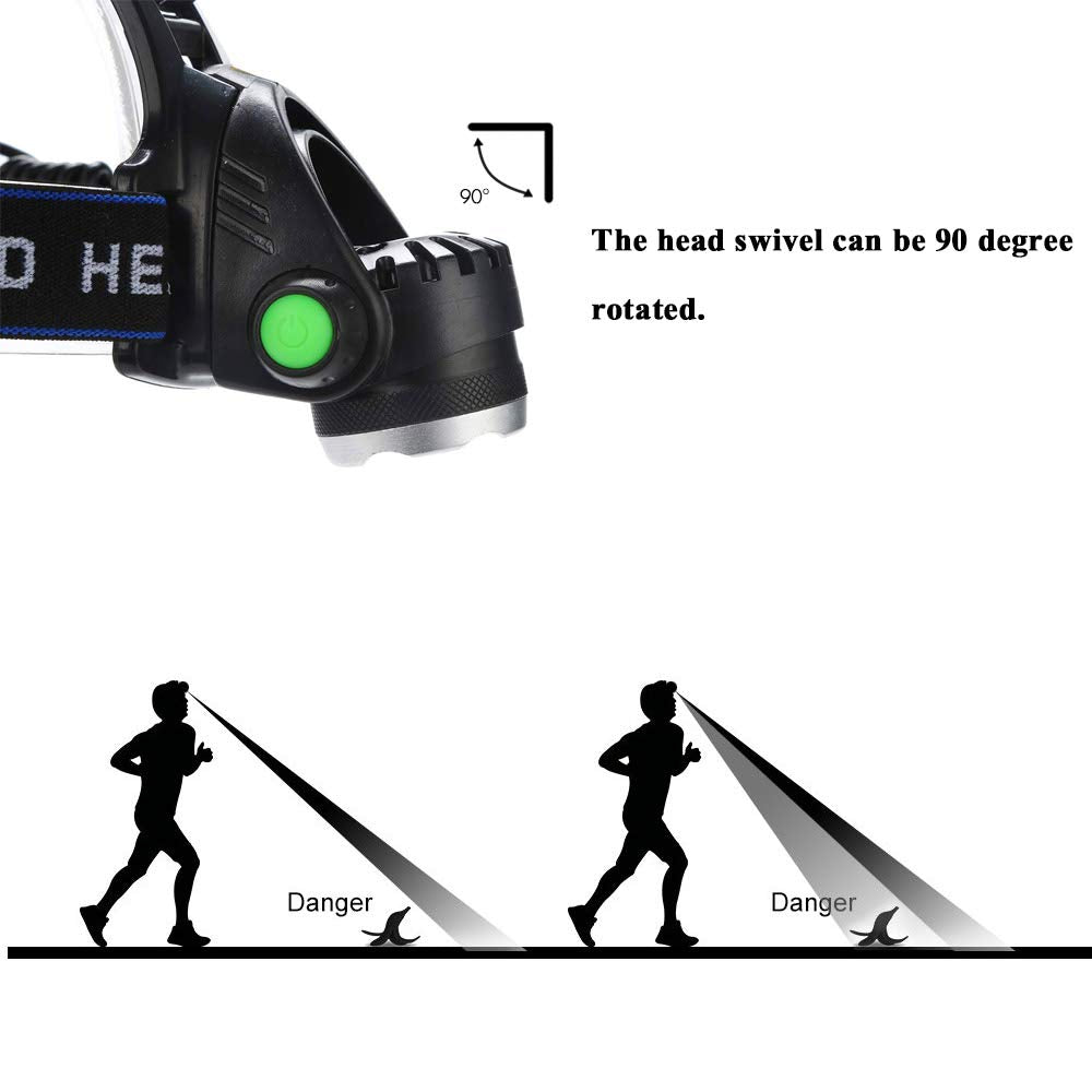 - ZOOMABLE: With adjustable focus, you can adjust the headlight for different usage, adjust the light for close flooding range to ultra-powerful precise beam. You can also push the light in different directions.