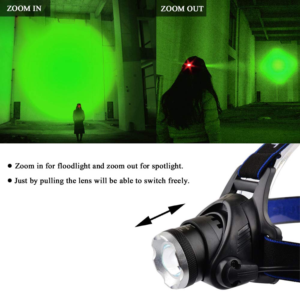- Original Headlamps – Green LED Headlamp Waterproof Head Torch Light with Zoomable and 3 Mode Best for Hunting, Outdoor Activities, Climbing, Astronomy by GaiGaiMall