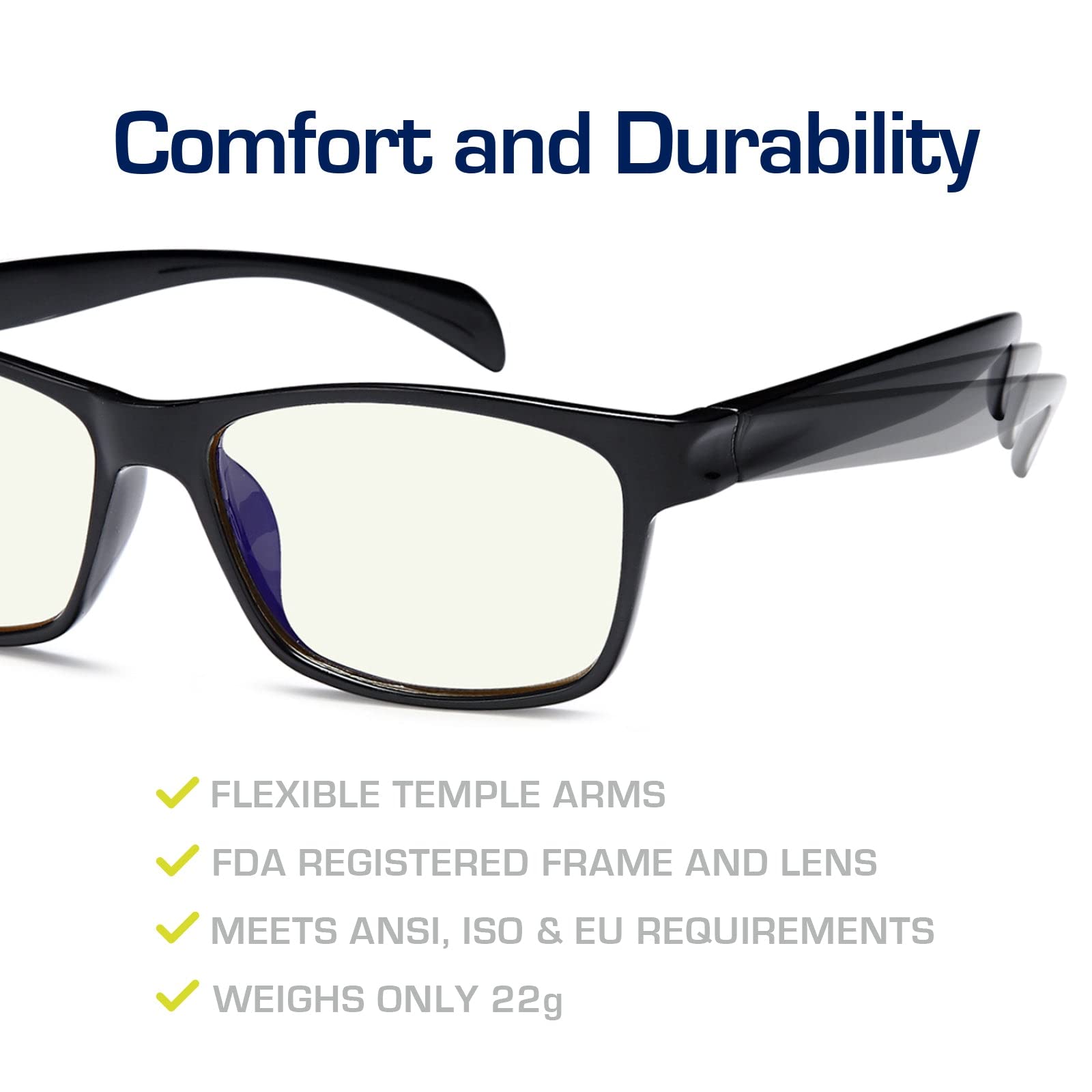 - Package includes: 1 pair computer glasses with amber tinted lenses to minimize digital eye strain caused by harmful blue light emitted from digital screens. Complimentary frame carrying case and cleaning cloth
