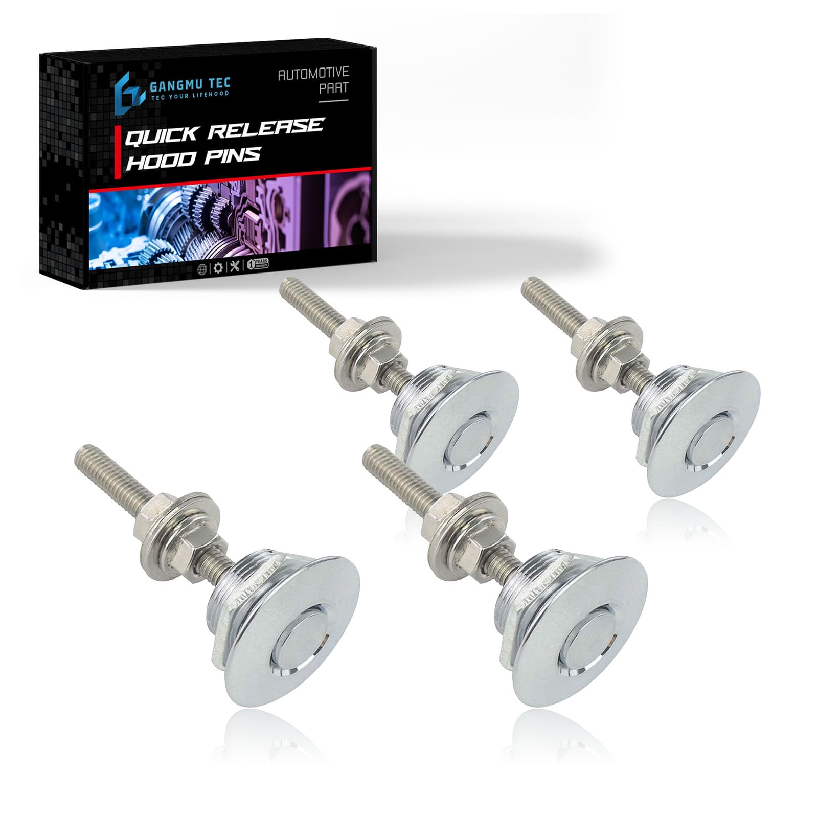 - Original Hood Pins – Gangmu Tec Pack of 4 Universal Aluminum Vehicle Hood Pins - License Plate Lock Clip, Push Button Bonnet, Quick Release Lock Latch Bumper, Diameter 1.25 inch (Silver, Pack of 4) by GANGMU TEC