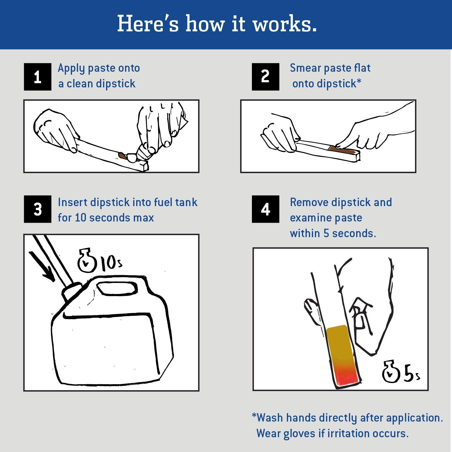 - Instant Color Shift for Quick Results – Mustard yellow paste turns red instantly upon contact with water, providing a fast and accurate indication of water contamination. Easily check fuel quality and protect your engines from potential damage.