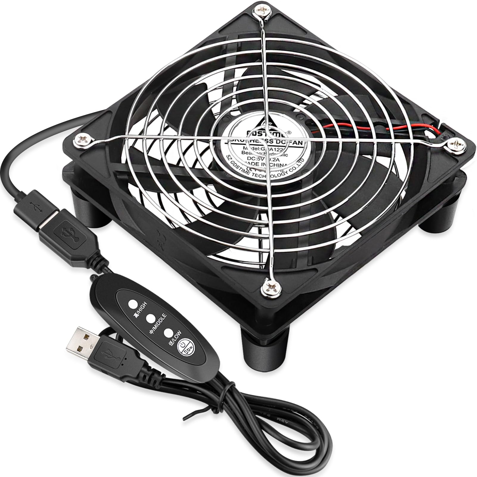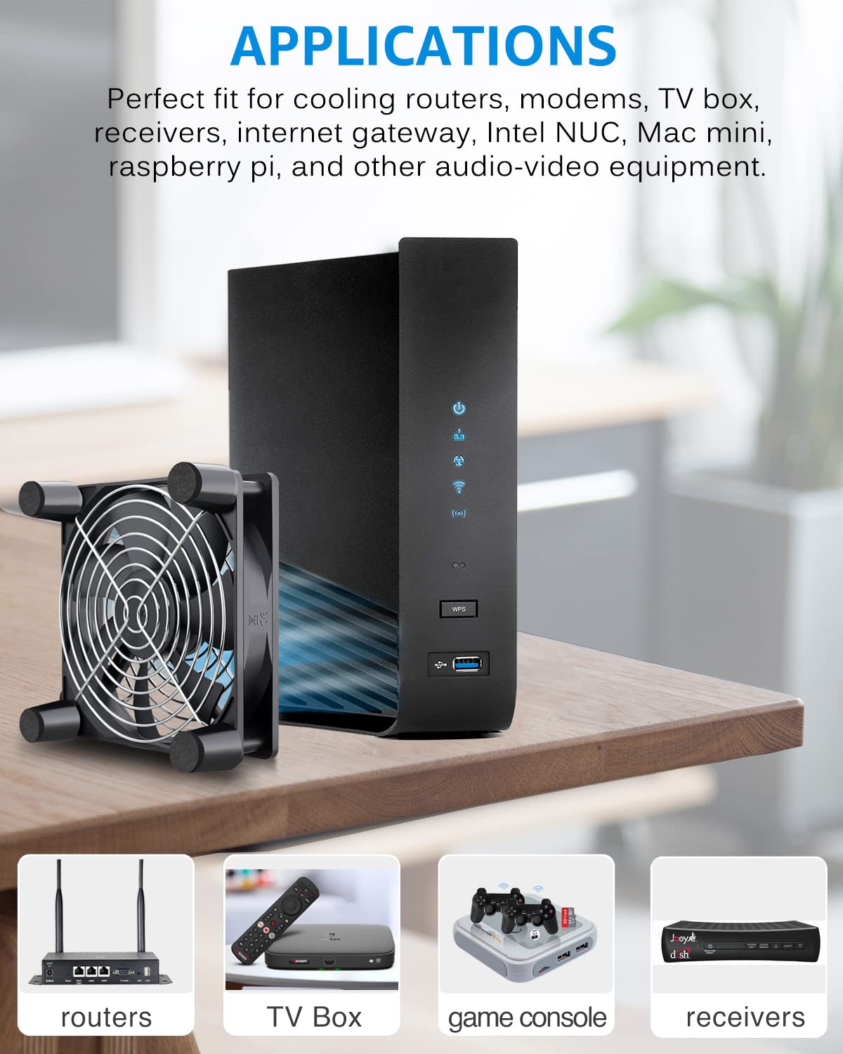 - WIDELY USED: 120mm quiet usb fans, Perfect fit for cooling Routers, Modems, TV box, Receivers, 5G Home Internet Gateway, Game Console, Mini Desktop, Raspberry pi, SSD and other audio video electronics