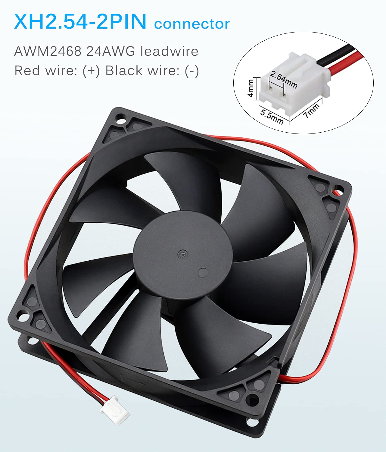 - Connector: XH2.54-2Pin; Lead wire: UL Type (+): Red wire ; (-): Black wire. This is a two wire cooling fan.