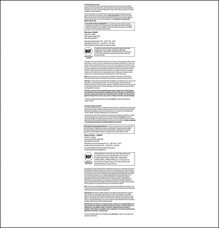 GE FQROPF Water Filters Specs: Dimensions: 8.5 L x 2 W Filter Media: Carbon Block