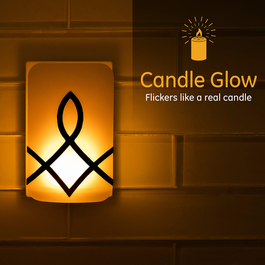 - SELECT LIGHT COLOR AND LEVEL – Push the button, located on the bottom of the night light, to switch between low white light, high white light, low amber light, high amber light, and candle flicker mode