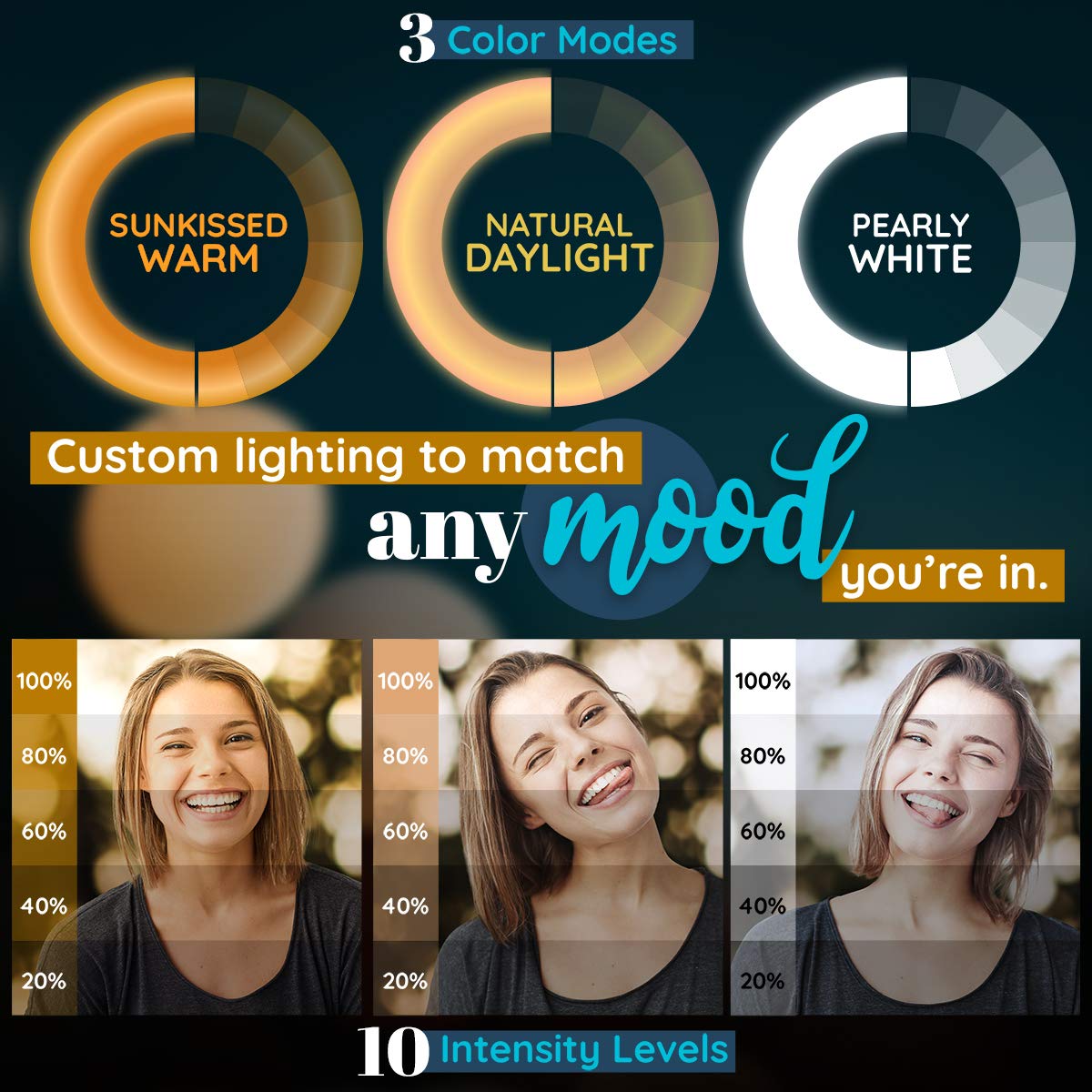 - LIGHTING MODE: Customize your next photo shoot or video conference lighting. With 3 different lighting modes and 10 different brightness settings, Instagram and TikTok filters are a thing of the past!