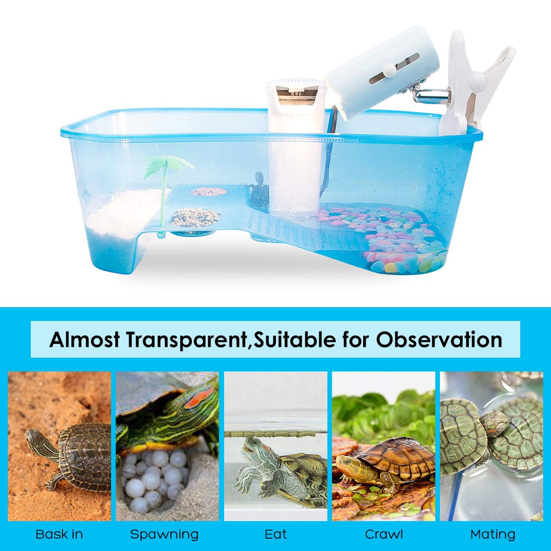 - Five Different Function Area: The turtle aquarium has a breeding hibernation area, a rest tortoise basking with feeding area, a non-slip crawling area, and a diving swimming area, providing joy for your turtle reptile