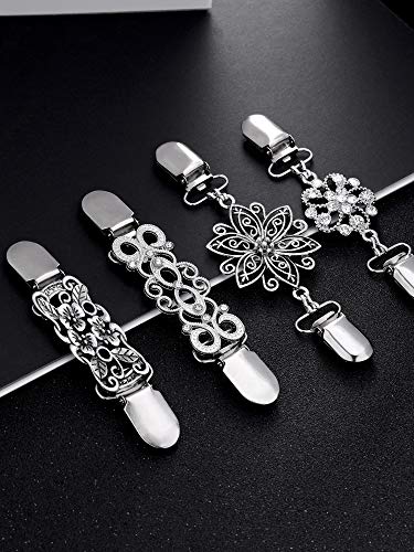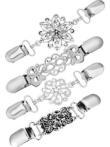 - Original Brooches & Pins – 4 Pieces Vintage Sweater Shawl Clip Dresses Cardigan Collar Clip sliver Flower Clip for Women clothing by Gejoy