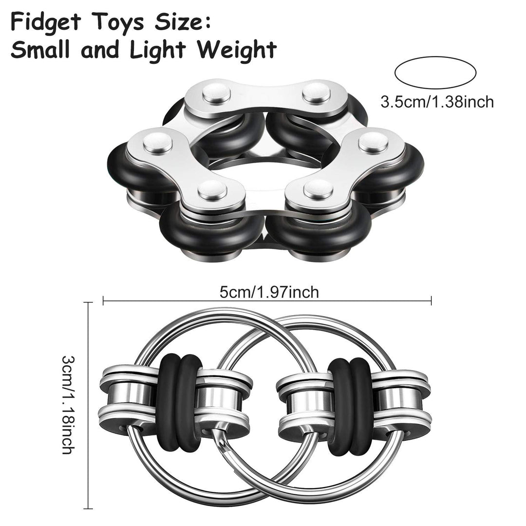 - Make your fingers busy: the roller chain fidget contains with 6 rollers is about 3.5 cm/ 1.38 inch in diameter, small size allows you to use one of your finger to turn it, the key flippy chain fidget can be twisted in any direction, both of them help you to relieve stress and anxiety
