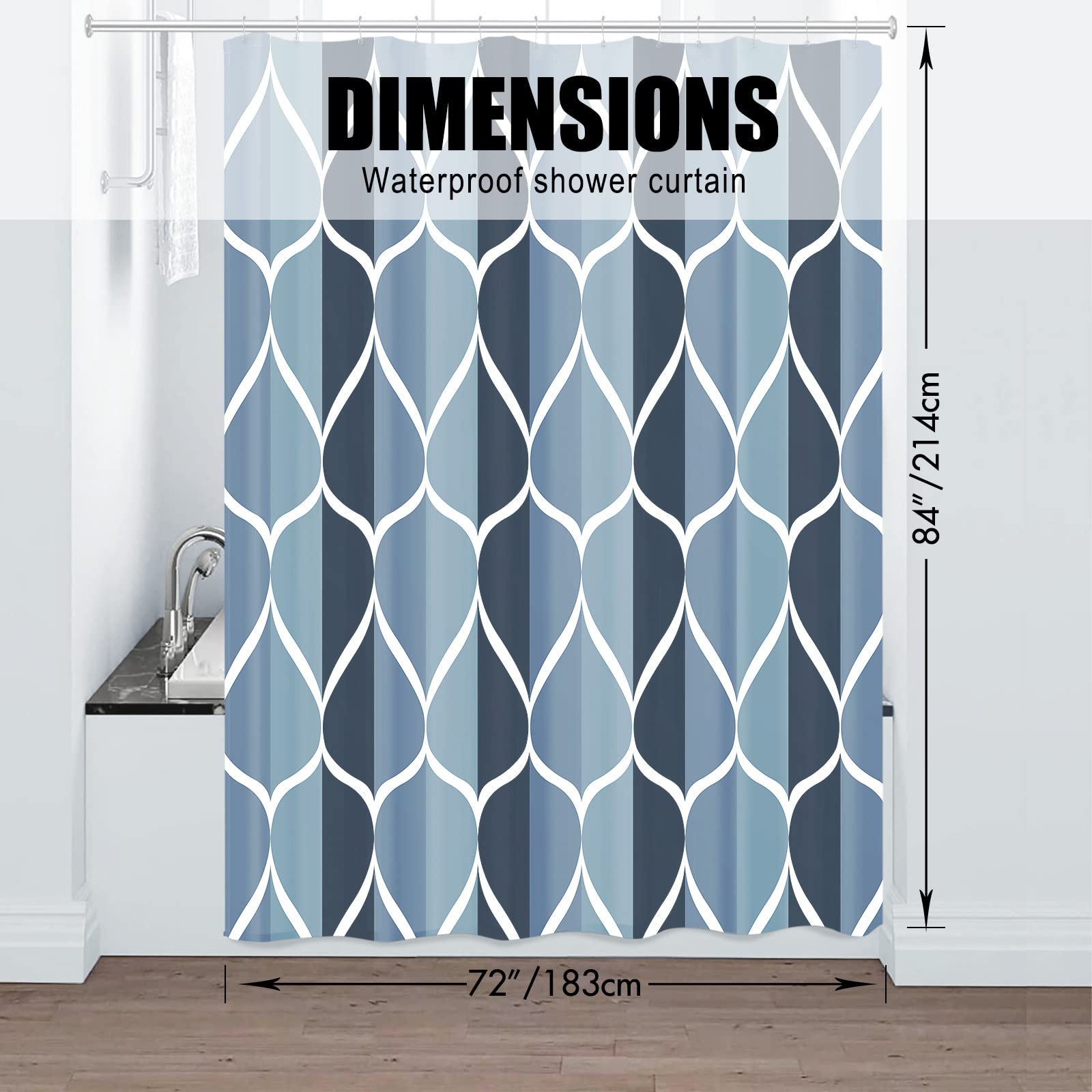 - PREMIUM QUALITY: The tight weave of the fabric and superior quality of the polyester yarns provide this curtain with a firm, smooth texture, which promotes water bead formation and is made to withstand damp, moisture-rich bathroom environments; This polyester blue shower curtain with a geometric ogee pattern add a vibrant and crisp test brighten your bathroom up. The fabric shower curtain provides perfect privacy and decorative appeal. Decorating your bathroom, take a surprise to your life.