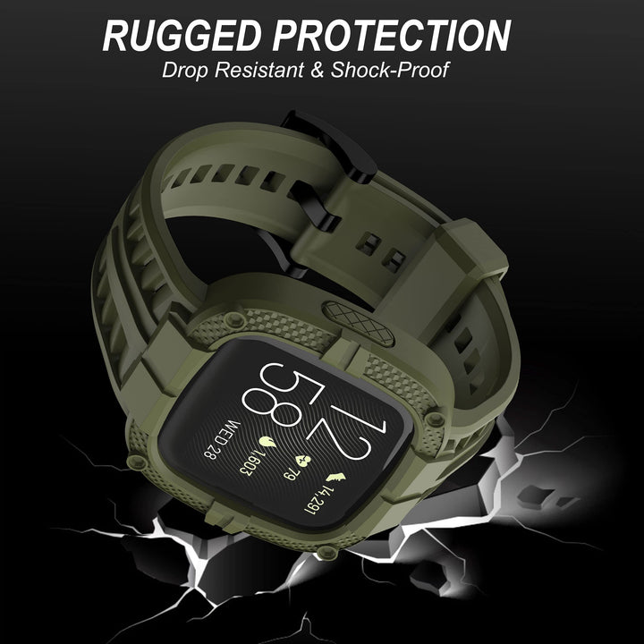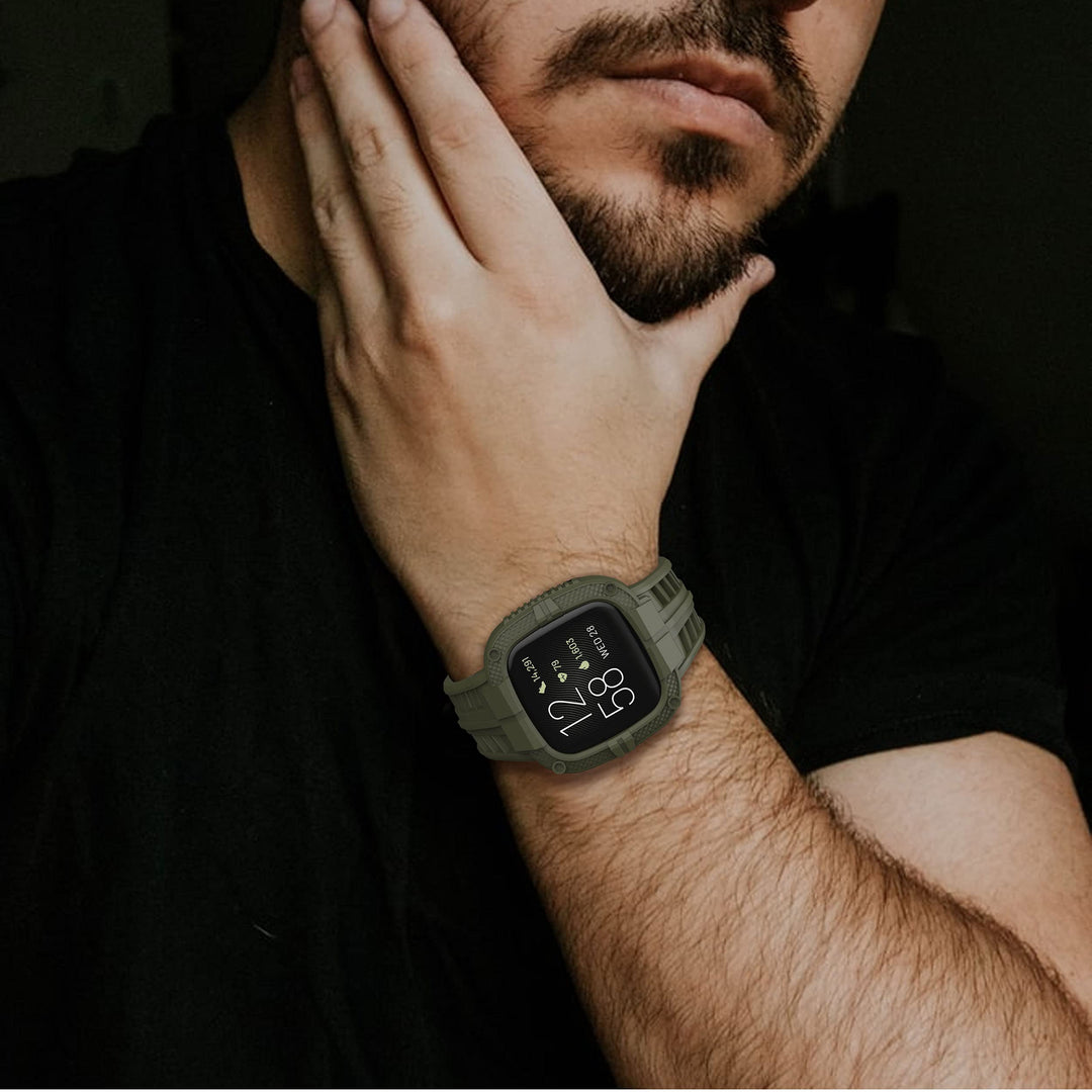 - Original Arm & Wristband Accessories – Compatible for Fitbit Versa 2 Bands with Case, Men Protective Case Band Rugged Sport Wristbands Strap for Smartwatch - Army Green by GELISHI