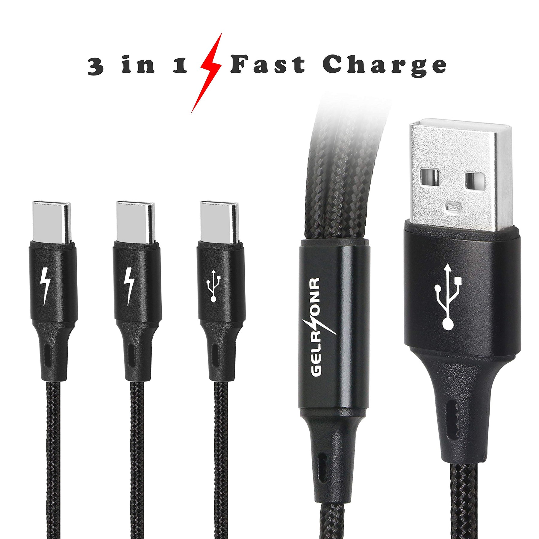 - Original USB Cables – Multi-USB C Cable 3A, 3 Type-C Male Plugs, 3-in-1 Nylon Braided Charging Cable, Compatible with Tablets, Mobile Phones/Android, etc. 4FT-1.25M (4FT-1.25M) by GELRHONR