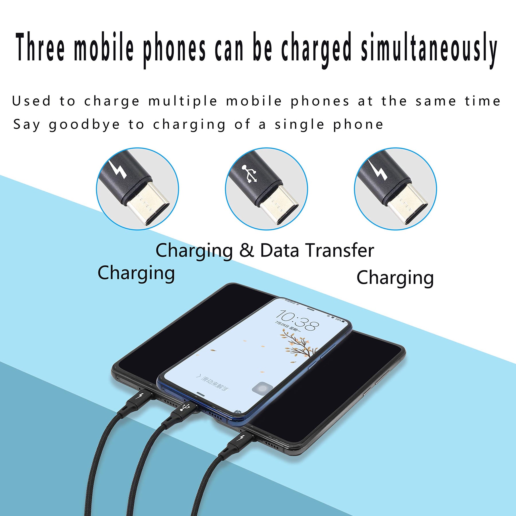 - 3-In-1 USB C Cable: Unique 3-in-1 USB A & USB C multi-charger cable design, multiple cables can be used to charge all your devices, it can charge most phones on market.No you need to find or borrow from your neighbors!