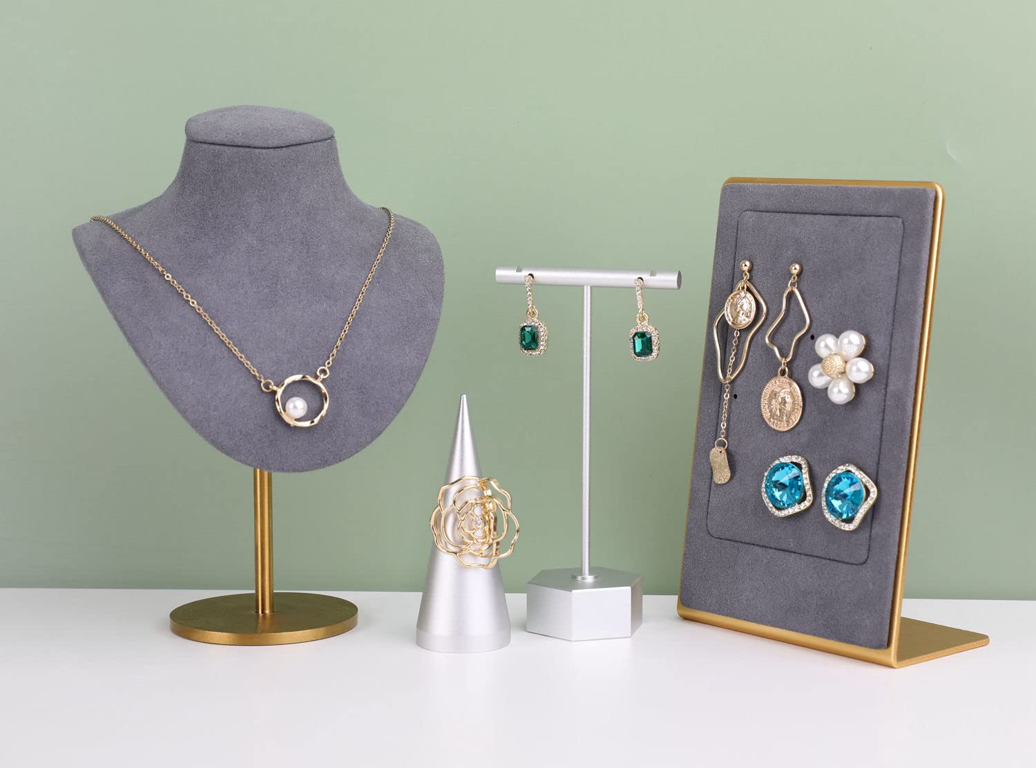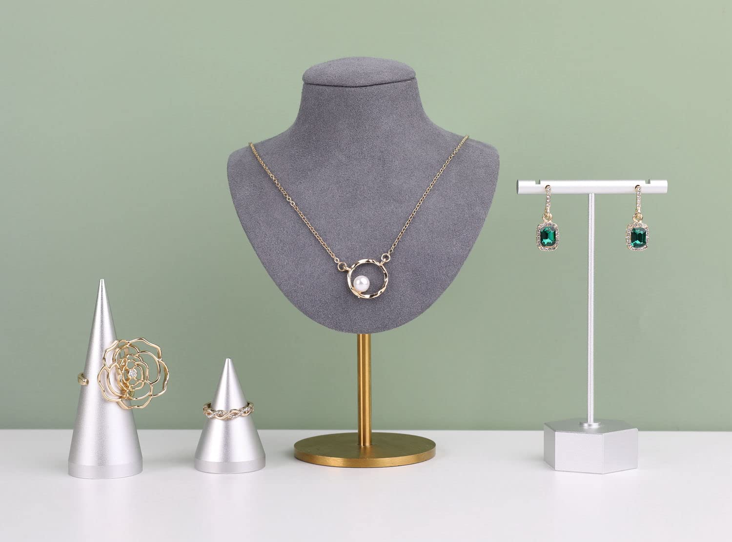 - Original Jewelry Towers – Velvet jewelry stand necklace holder, Grey jewelry hangers for necklaces, Metal jewelry bust display standsGrey-Height 6.5 inch by GemeShou