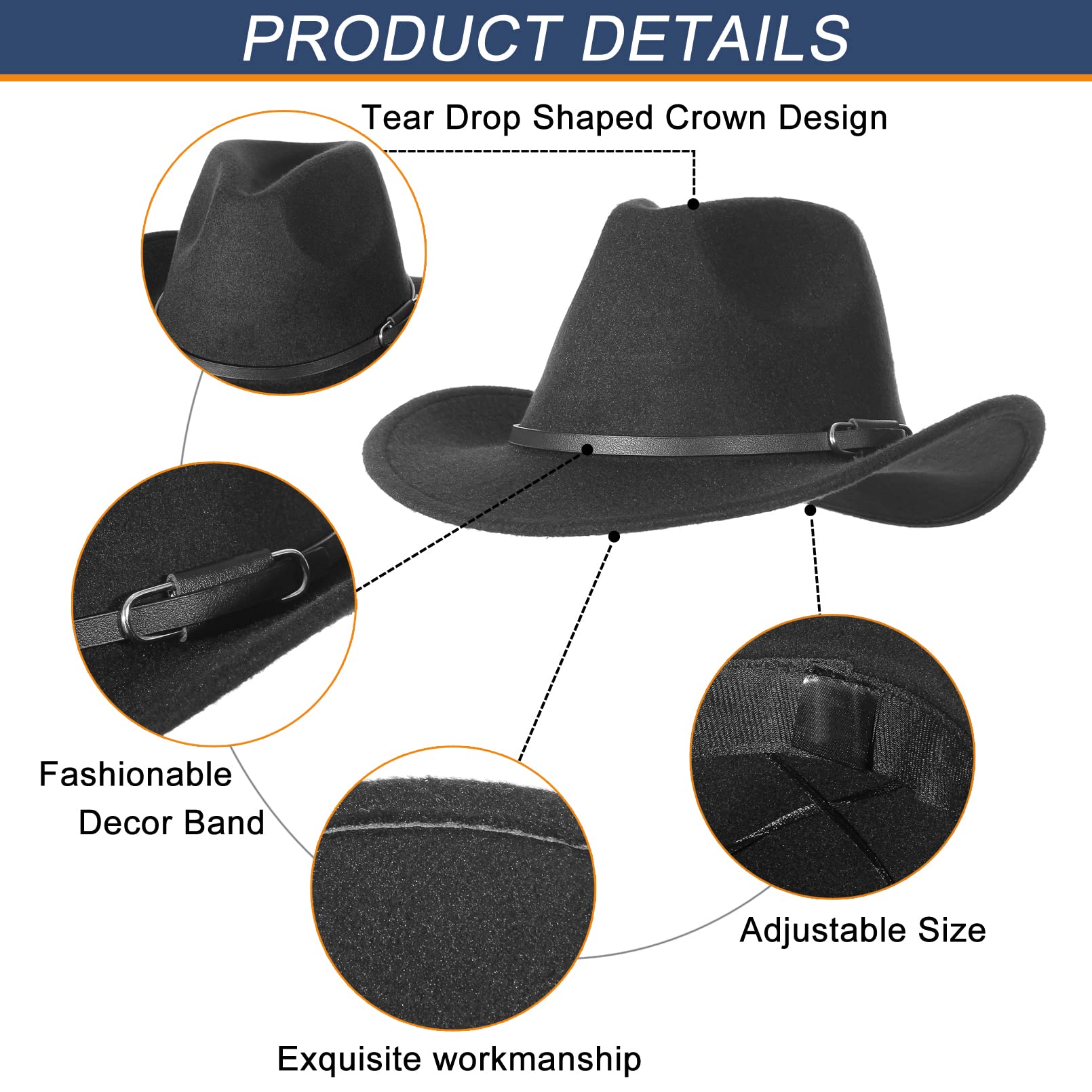 - [Western Hat]--Classic western cowboy hat style, fedora cowboy hat, rolled brim,belt buckle decoration, elegant and stylish, great accessory for unisex.