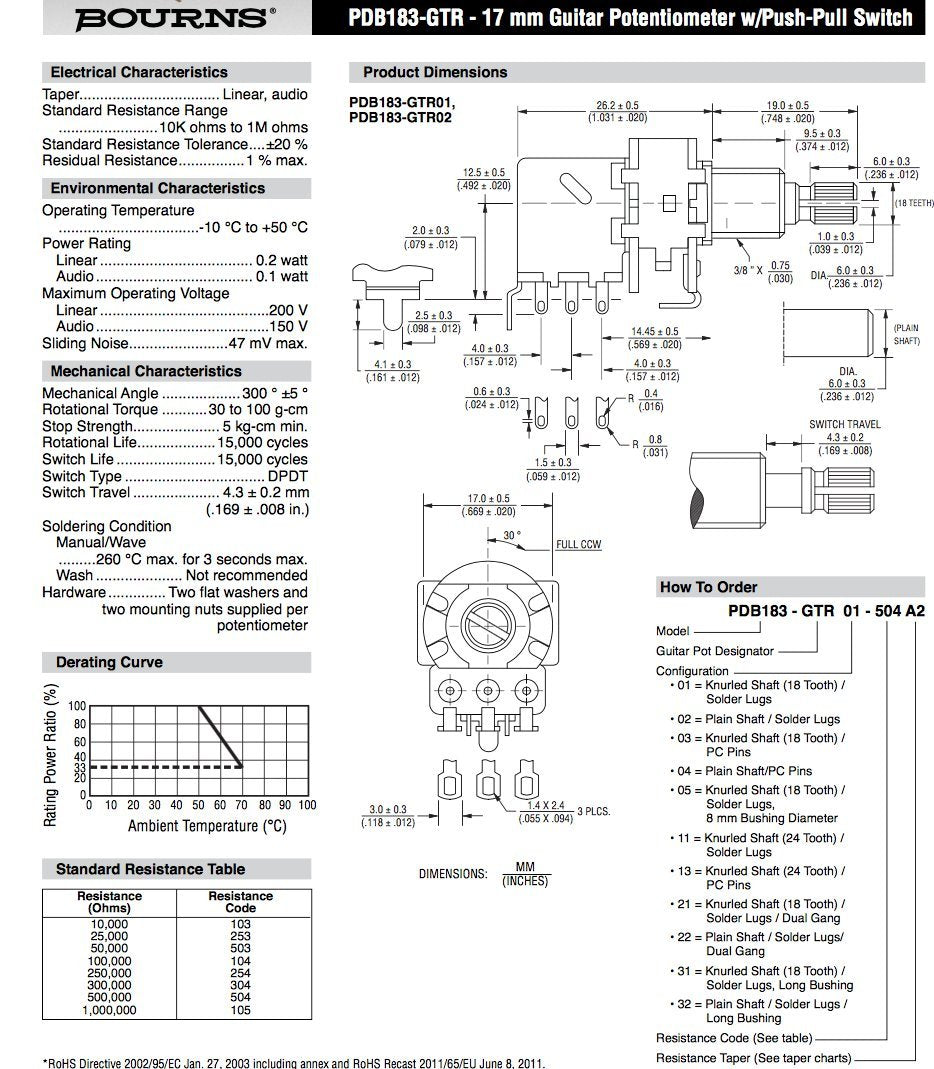 - Original Electronics – Genuine Bourns 500K (Pack of 2) Split Shaft Push-Pull Pot for Electric Guitar by BOURNS