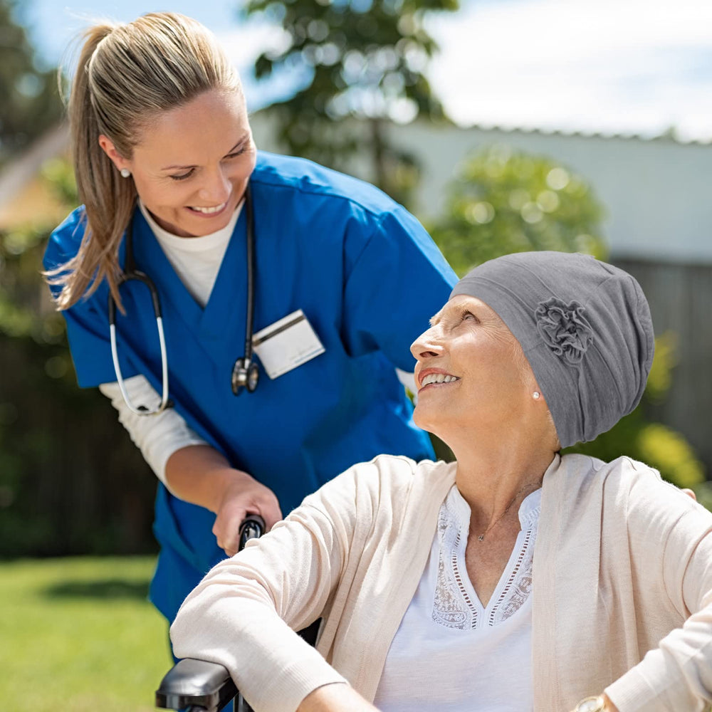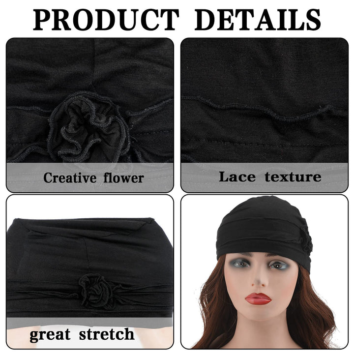- Original Skullies & Beanies – 4 Pcs Chemo Hear for Women Cancer Caps Headcovers Headwrap Soft Flower Turban Hats for Women(Black, Gray, Khaki, Burgundy,Simple Flower) by Geyoga
