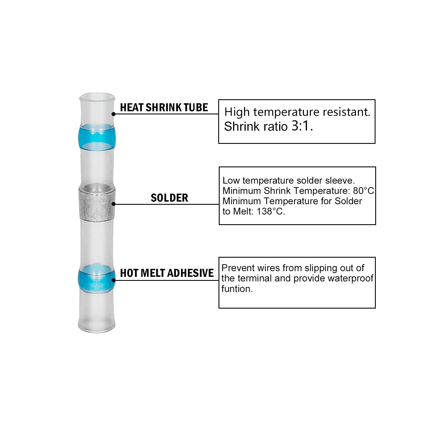 - Original Heat-Shrink Tubing – 100 PCS 16-14 AWG Solder Seal Heat Shrink Wire Connector Kit Waterproof Connector Kit with Case Blue by Ginsco