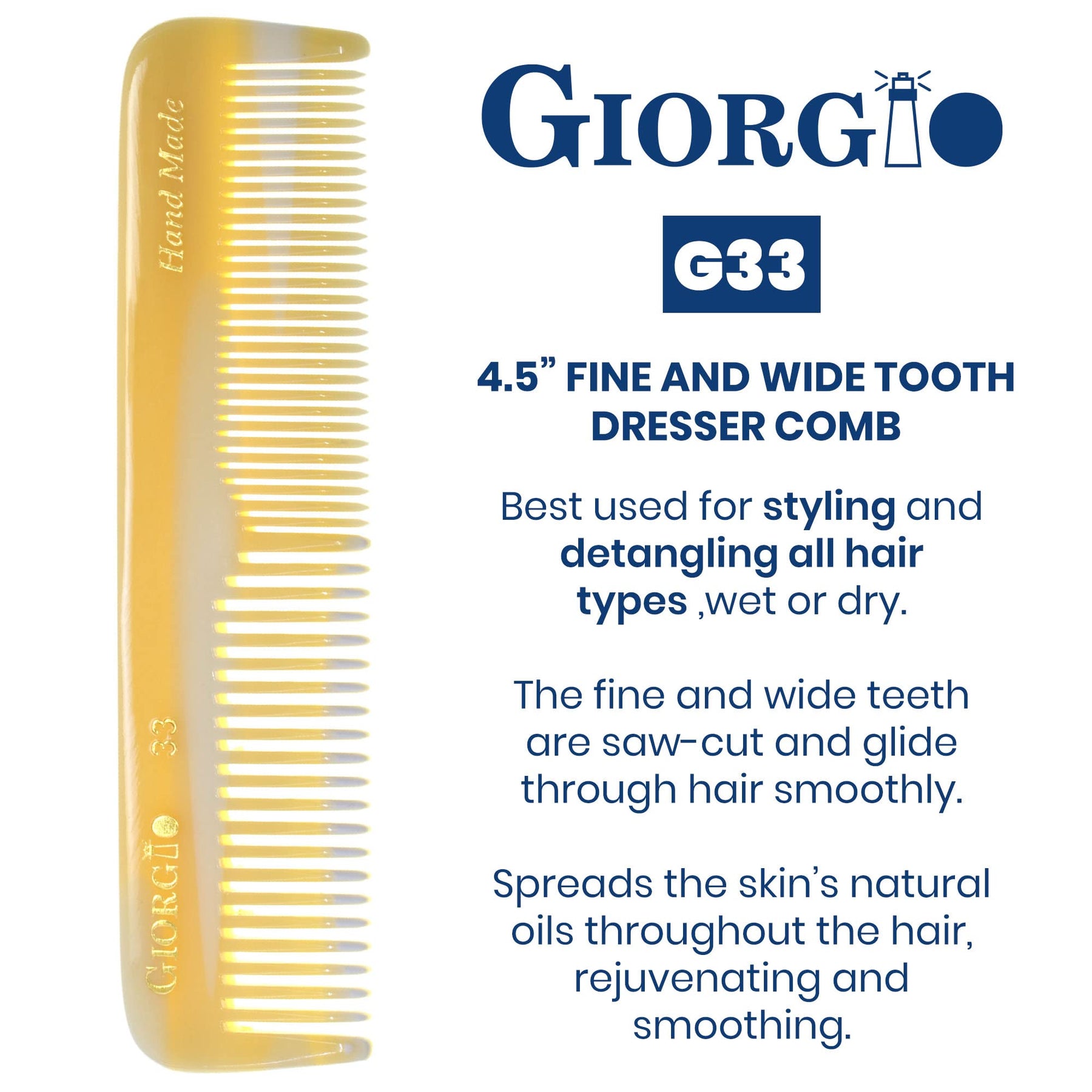 - Original Combs – Giorgio G33 4.45 113mm Coarse/Fine Toothed, Flexible men's Hair, Beard & Mustache Pocket Comb. by GIORGIO