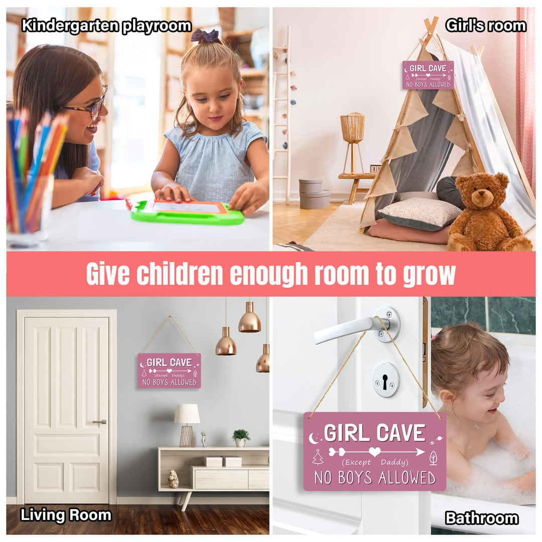 - CUTE BEDROOM DECOR FOR GIRLS: This kids bedroom decor can be used as a girl room decor, princess nursery decor,room decoration for sisters, also can be hung in nursery playroom, dormitory and other scenes, also can be a beautiful gift for important occasions such as baby shower and newborn gift. It can be used as a sign that boys are not allowed to enter to protect girls' privacy.