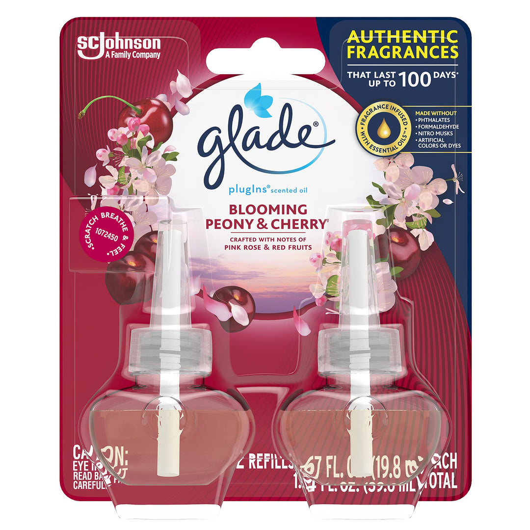 - Original Electric – PlugIns Refills Air Freshener, Scented and Essential Oils for Home and Bathroom, Blooming Peony & Cherry, 1.34 Fl Oz, 2 Count by Glade