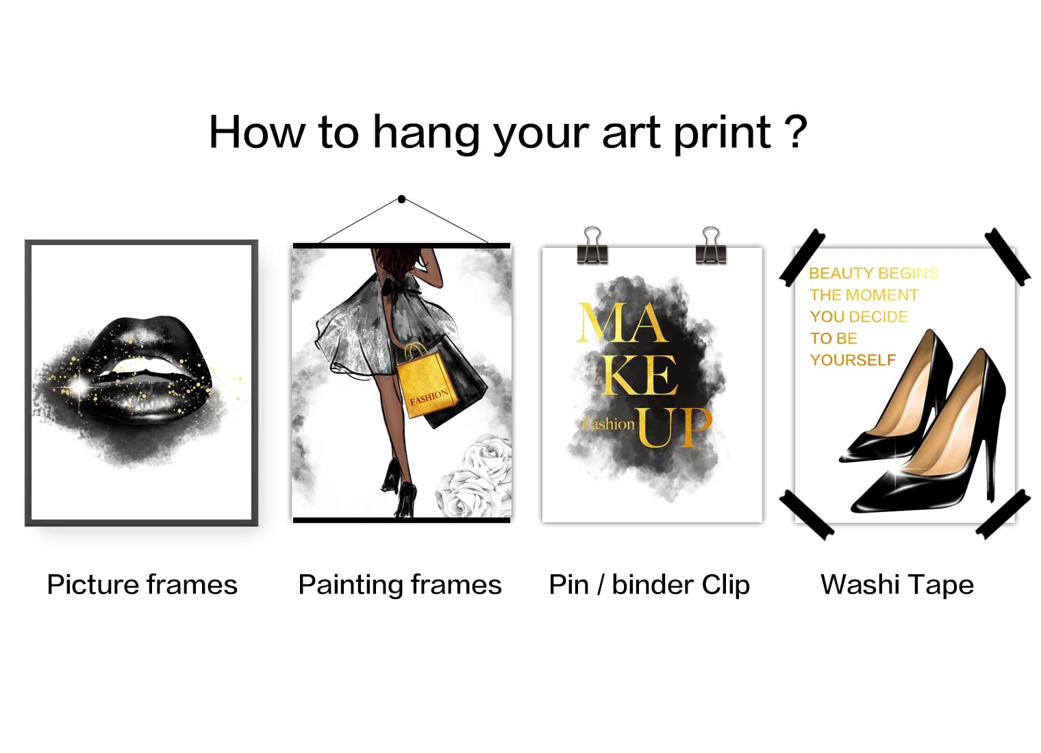 - Original Posters & Prints – Glam Black Golden Fashion Wall Art Girls Room Decor Wall Black Golden Fashion Shopping lady Perfume Flower Book High Heels Posters Prints Women Decor Bedroom(8x10 inch Unframed, Black) by Coaxbnue