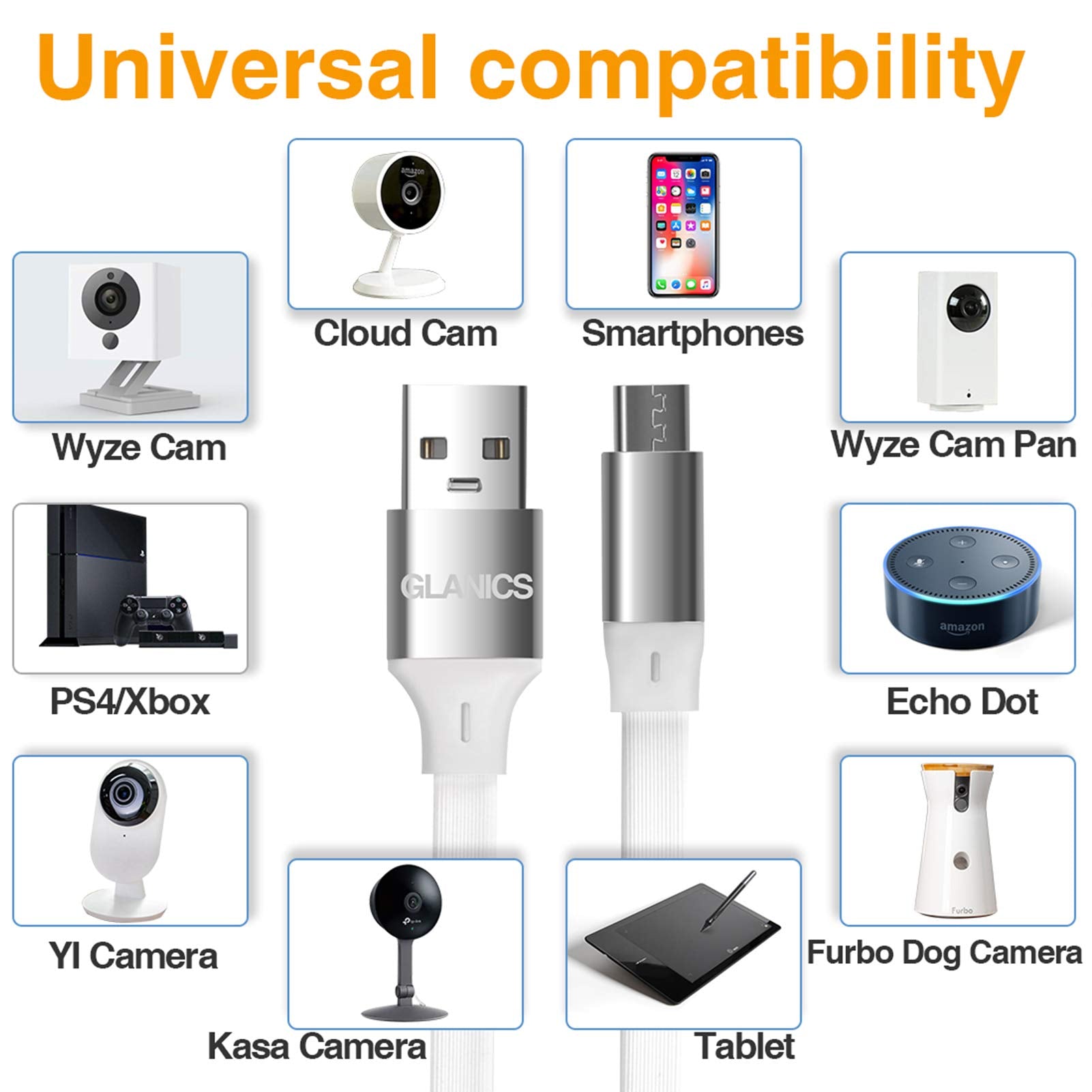 - Original USB Cables – 20ft Micro USB Cable, Micro USB Power Extension Cable, Charging and Data Sync Cable for Wyze Cam, Cloud Cam, Android Phone, Mobile Powe and Other Devices (White) by GLANICS