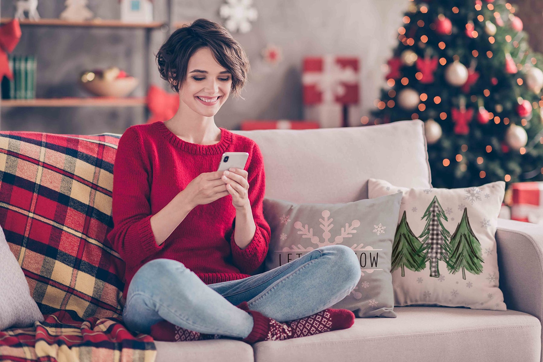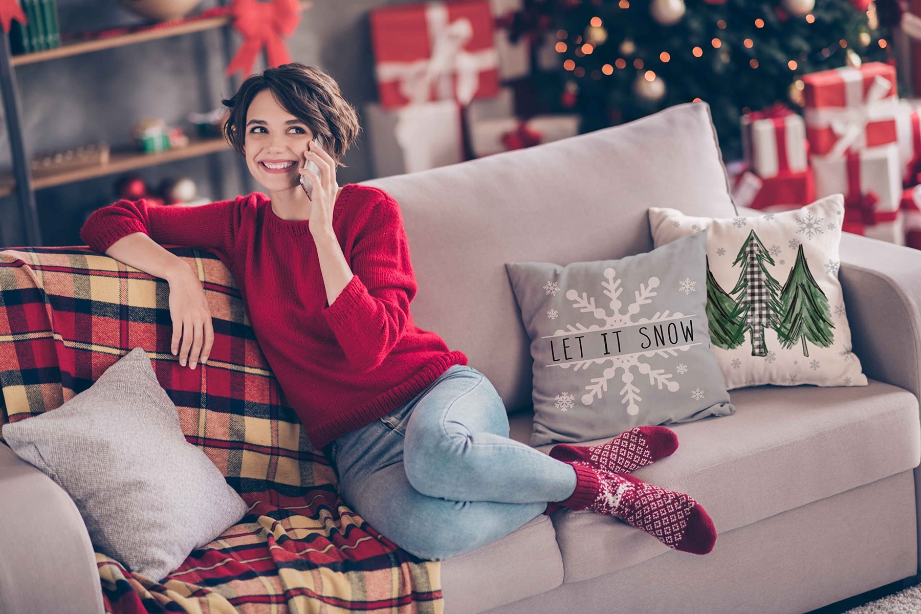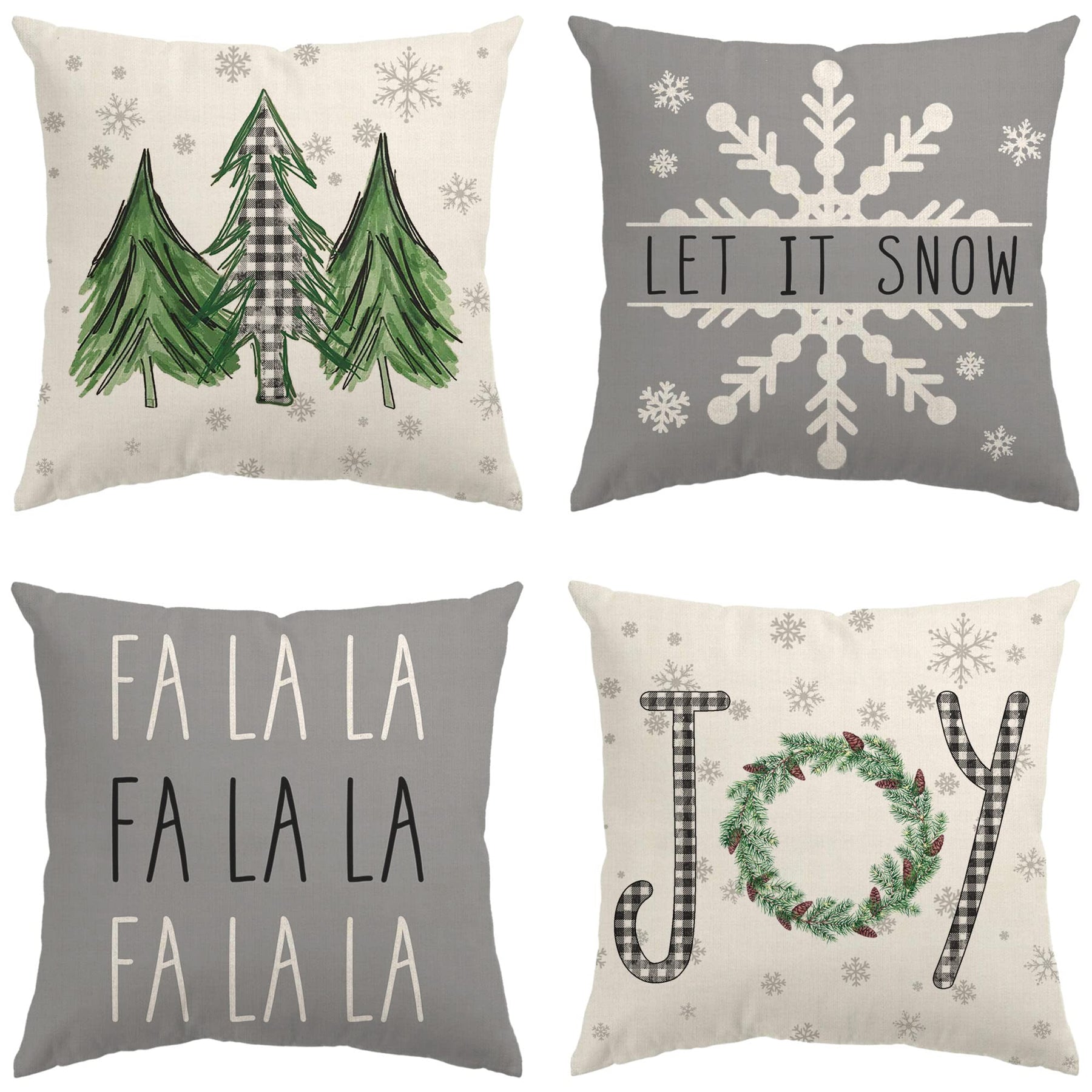 - Original Throw Pillow Covers – Christmas Pillow Covers 18x18 Set of 4 Farmhouse Christmas Decorations Merry Tree Joy Let It Snow FA La La Winter Holiday Decor Throw Cushion Case for Home Couch by Glaring
