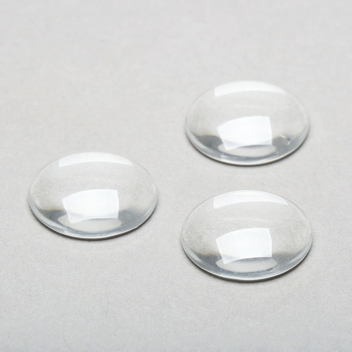 Glass cabochon with non-calibrated round and flat-back design has a magnifying effect when placed on top of images or words.