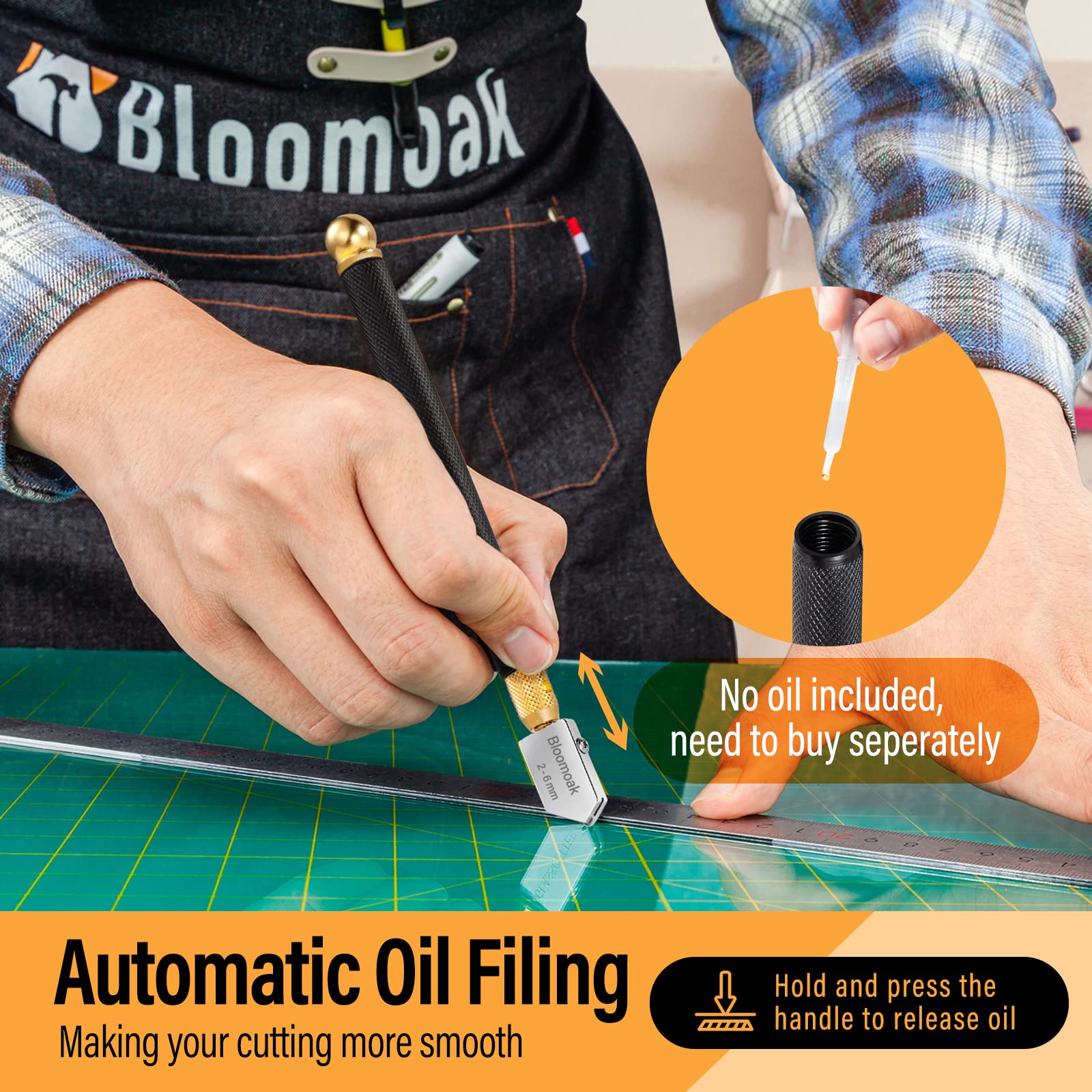 - Original Categories – Glass Cutter Tool Set, 2-20mm 5pcs Glass Cutter Kit with Portable Storage Box, Pencil Style Oil Feed Carbide Tip with 2 Bonus Blades and Screwdriver for Cutting Stained Glass, Tiles, Mirror, Mosaic by B BLOOMOAK