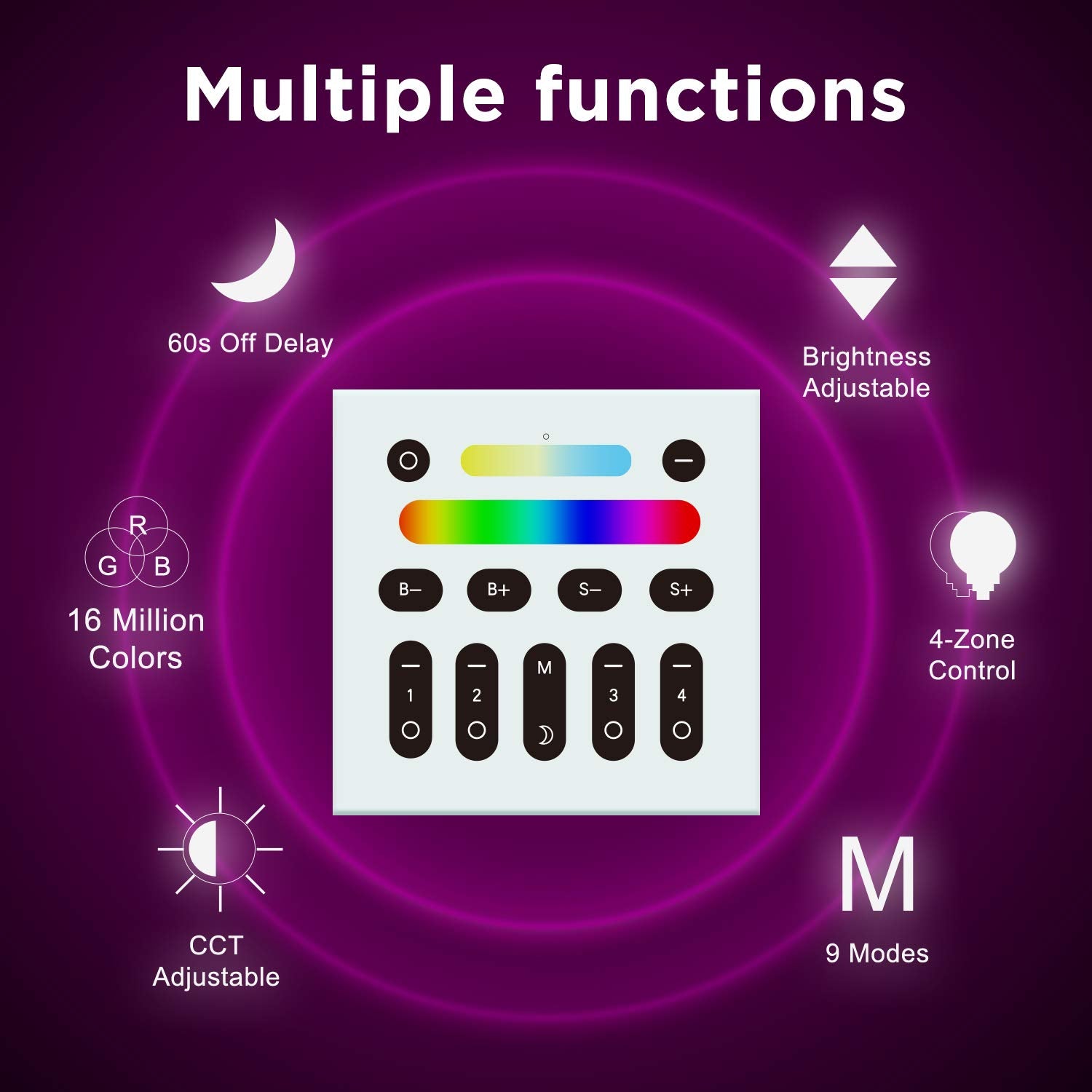 - Original Categories – RGBCCT 2.4G RF Remote Control Wall Switch, Color/Color Temperature/Brightness Adjustable, Group Management, Night Light, 9 Modes Changing by GLEDOPTO