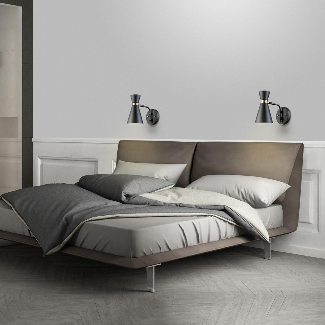 - INDUSTRIAL LUXE: a satin black finish pairs perfectly with gold accents and a shapely hourglass design to elevate this industrial wall sconce to luxury